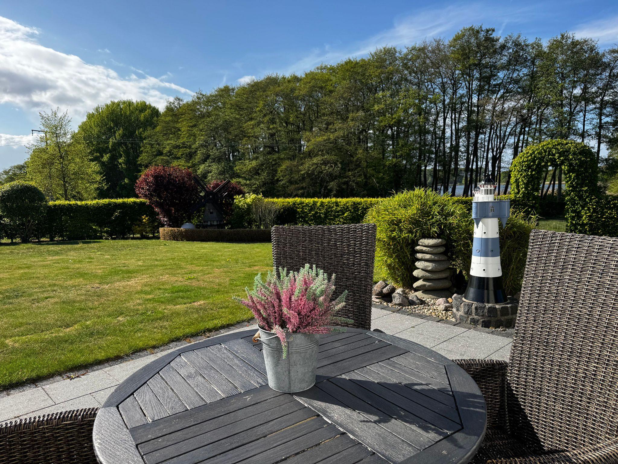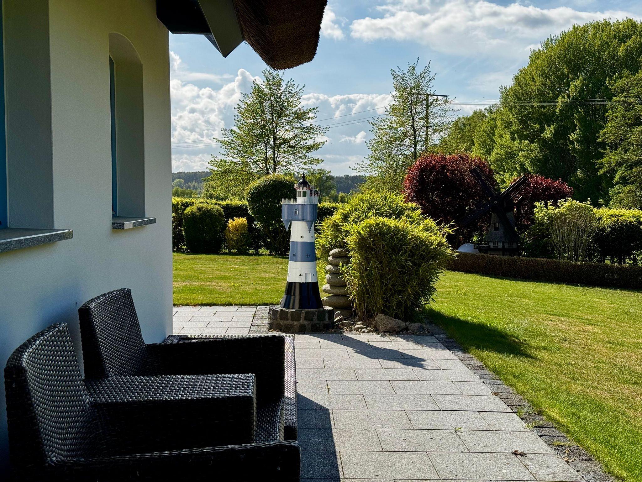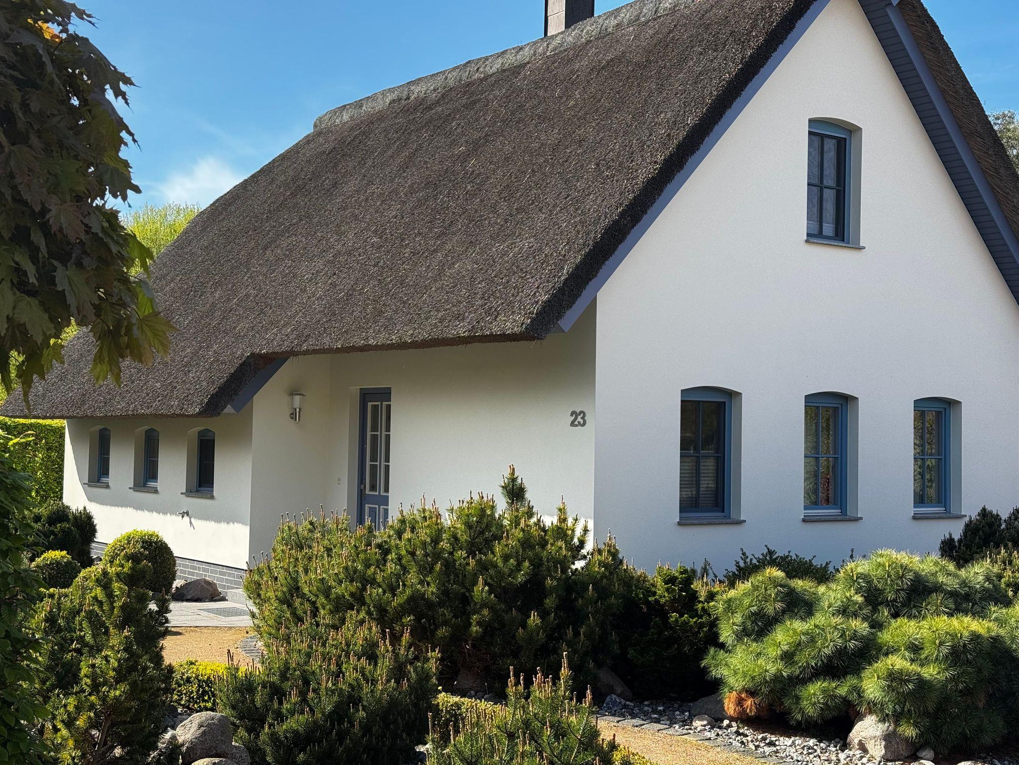 Das großzügige, wunderschön angelegte Grundstück umgibt das Haus und bietet viel Raum für Erholung und Aktivitäten im Freien Hier können Sie die Ruhe der Natur genießen, während Sie von der typischen Reetdacharchitektur umgeben sind, die für ein authentisches Urlaubsgefühl in Küstenregionen sorgt1