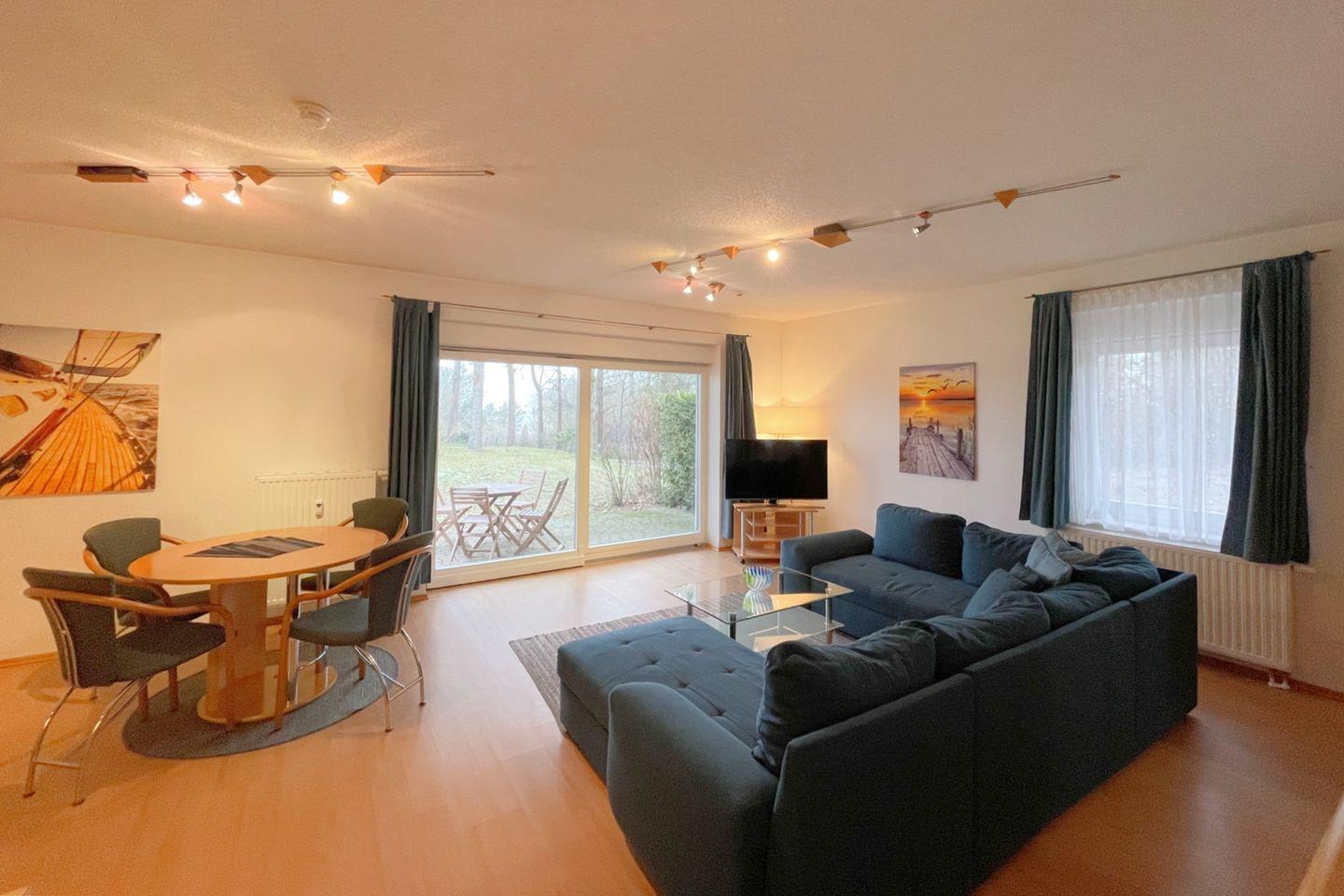 Gemütliche Ferienwohnung in Loddin mit Terrasse und Gartenblick, ideal für Familien und Naturfreunde.
