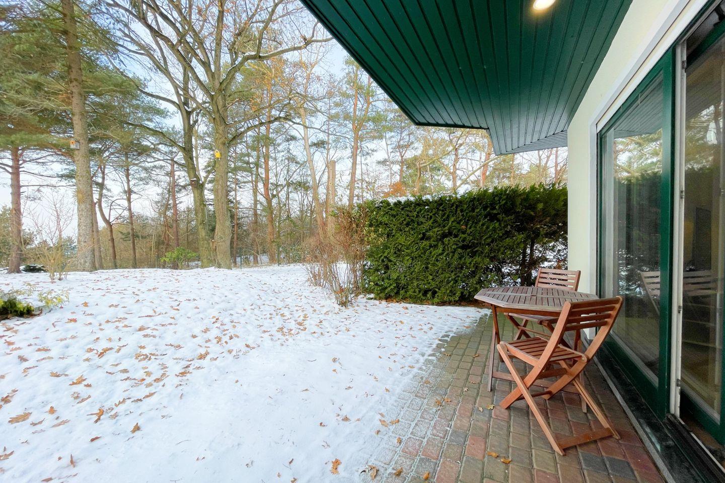 Die überdachte Terrasse ist der ideale Ort, um die frische Luft und die beruhigenden Klänge der Natur zu genießen – perfekt für eine Tasse Kaffee am Morgen oder ein Glas Wein am Abend. Angrenzend zu Ihrer Unterkunft liegt ein schöner Garten mit Liegewiese und gemütlichen Gartenmöbeln, die einladend zur Entspannung unter freiem Himmel einladen. Hier können die Kleinsten spielen und toben, während die Erwachsenen die Ruhe genießen.