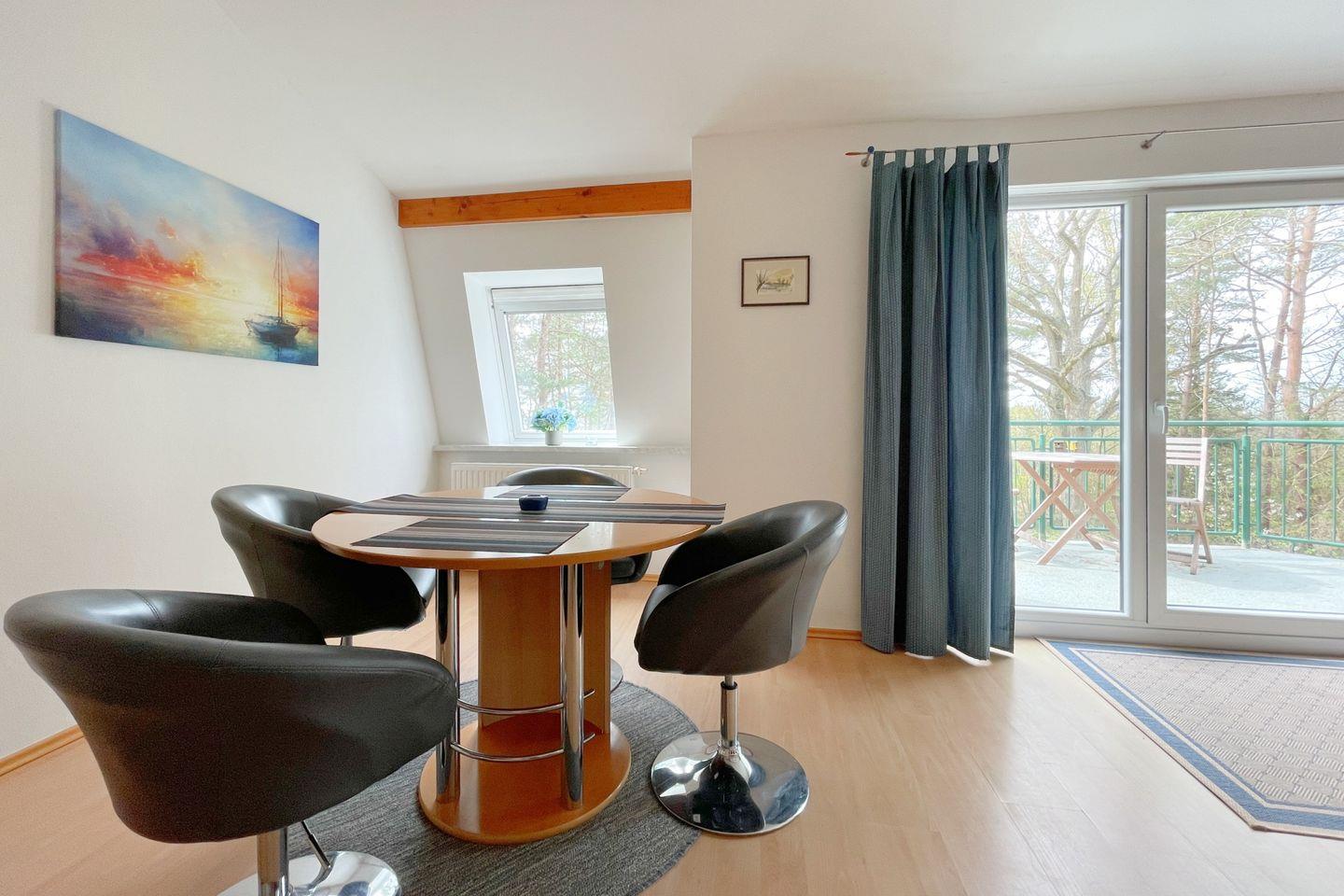 Gemütliche, moderne Ferienwohnung im Haus Berlin nahe der Ostsee mit Balkon und Blick auf das Achterwasser.
