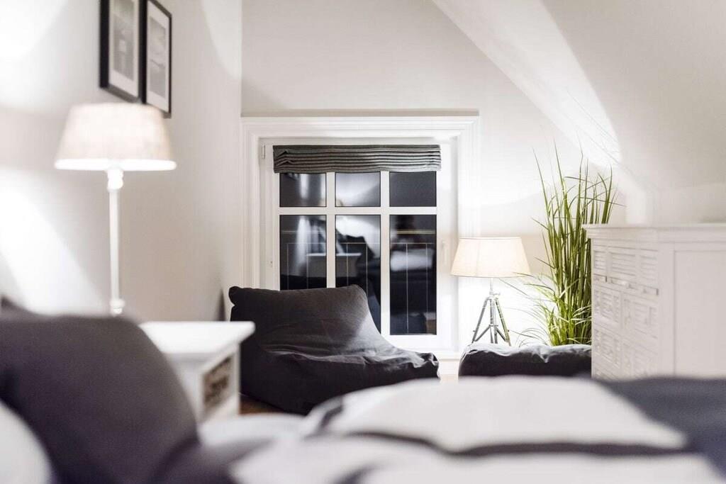 Die stilvolle Ferienwohnung / Maisonett ist geschmackvoll und hochwertig eingerichtet. Es bietet Platz für 4 Personen plus einem / zwei Baby(s) auf ca. 70 qm und verfügt über zwei Schlafräume, ein großzügigem Wohn-Essbereich, ein exklusiv ausgestattetes Vollbad mit Badewanne für 2 Personen, ein Duschbad sowie einen Abstellraum und erstreckt sich über zwei Ebenen mit herrlichem Achterwasserblick. Ein Stellplatz für Ihr Auto und ein Außen-Abstellhäuschen für Fahrräder sind ebenso vorhanden.