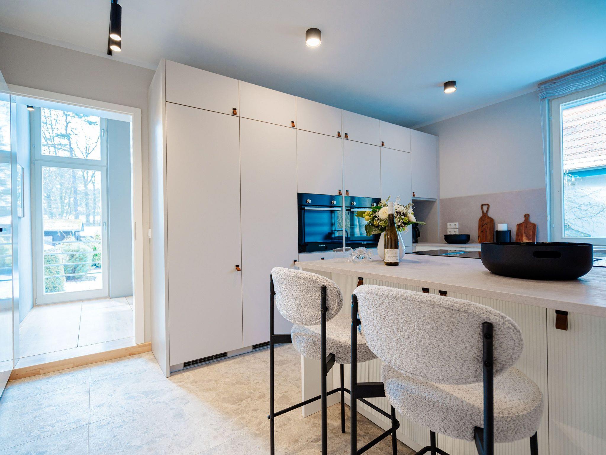 Das großzügige Ferienhaus Beatus ille im Seebad Kölpinsee bietet mit ca. 300?m² Platz für bis zu 14 Personen und zwei Kleinkinder. Die liebevoll sanierte Villa mit 7 Schlafzimmern, 6 Bädern und eigenem Wellnessbereich mit Sauna vereint stilvoll den Charme vergangener Zeiten mit hochwertiger, moderner Ausstattung. Die voll ausgestattete Küche, ein großer Essbereich, Kaminofen sowie eine sonnige Terrasse mit Platz für alle Gäste machen das Haus zum perfekten Ort für Familienurlaube oder entspannte Auszeiten mit Freunden. Strand, Wald und Natur sind nur wenige Schritte entfernt ? ein besonderes Feriendomizil für alle, die Ruhe, Stil und Gemeinschaft schätzen.