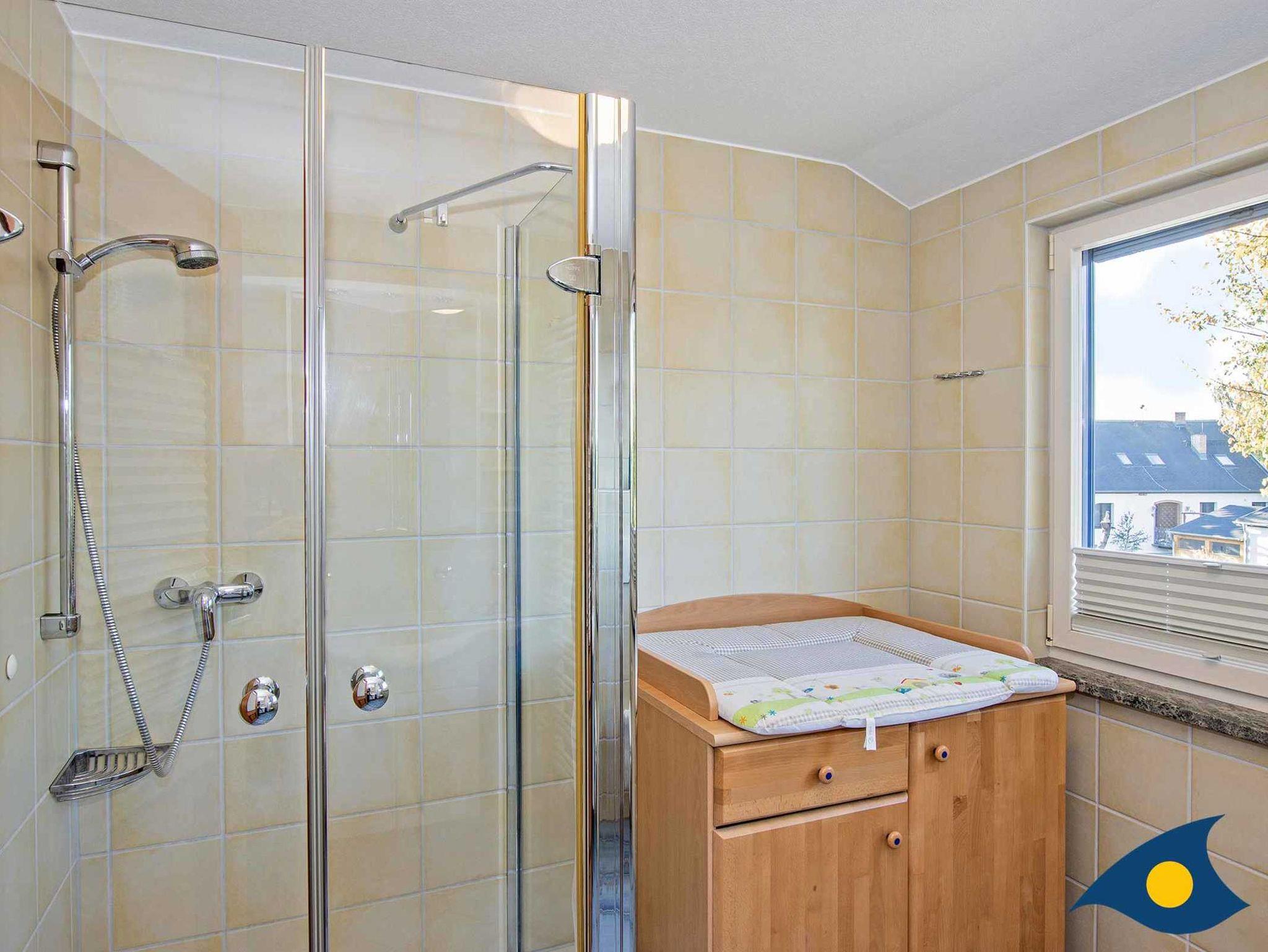 In 2 Schlafzimmern kann problemlos ein Kinderbett mit aufgestellt werden. Es gibt 2 Bäder, die Bäder sind jeweils mit Dusche ausgestatte sind. In einem Bad befinden sich Waschmaschine und Wäschetrockner. Im anderen Bad steht ein Wickeltisch. Vorhanden sind selbstverständlich TV, Radio, CD-Spieler, Geschirrspüler, Waschmaschine, Wäschetrockner, Mikrowelle, Kaffeemaschine, Toaster, Kühlschrank, Gefrierschrank usw..
