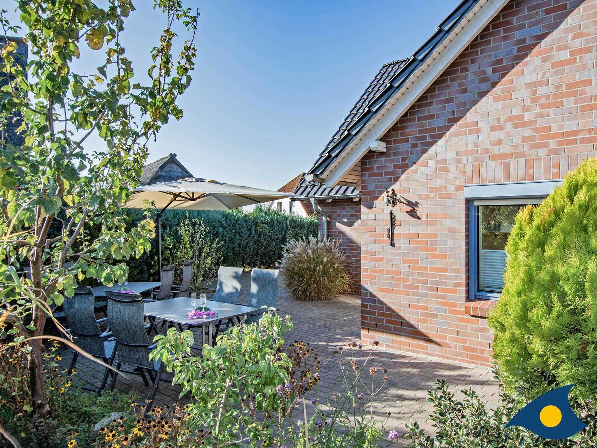 Modernes Ferienhaus mit Achterwasserblick, Garten, Grillplatz und smartem Zugang für entspannte Familienurlaube.