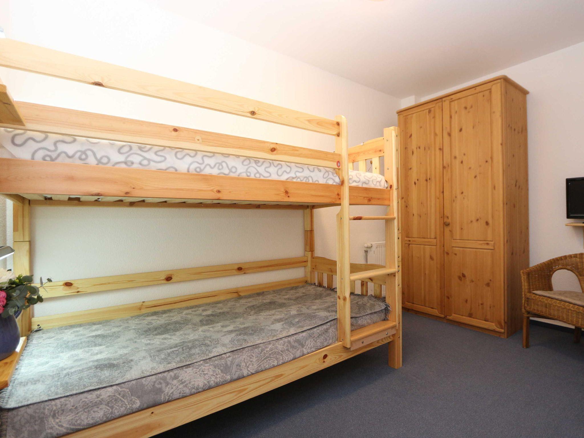 • Das Kinderzimmer, ein innenliegenden Raum mit Oberlichtfenstern zur Essecke hin (ohne Aussenfenster) verfügt über ein Etagenbett, einen Kleiderschrank und ein Flachbildfernseher mit DVD-Funktion.