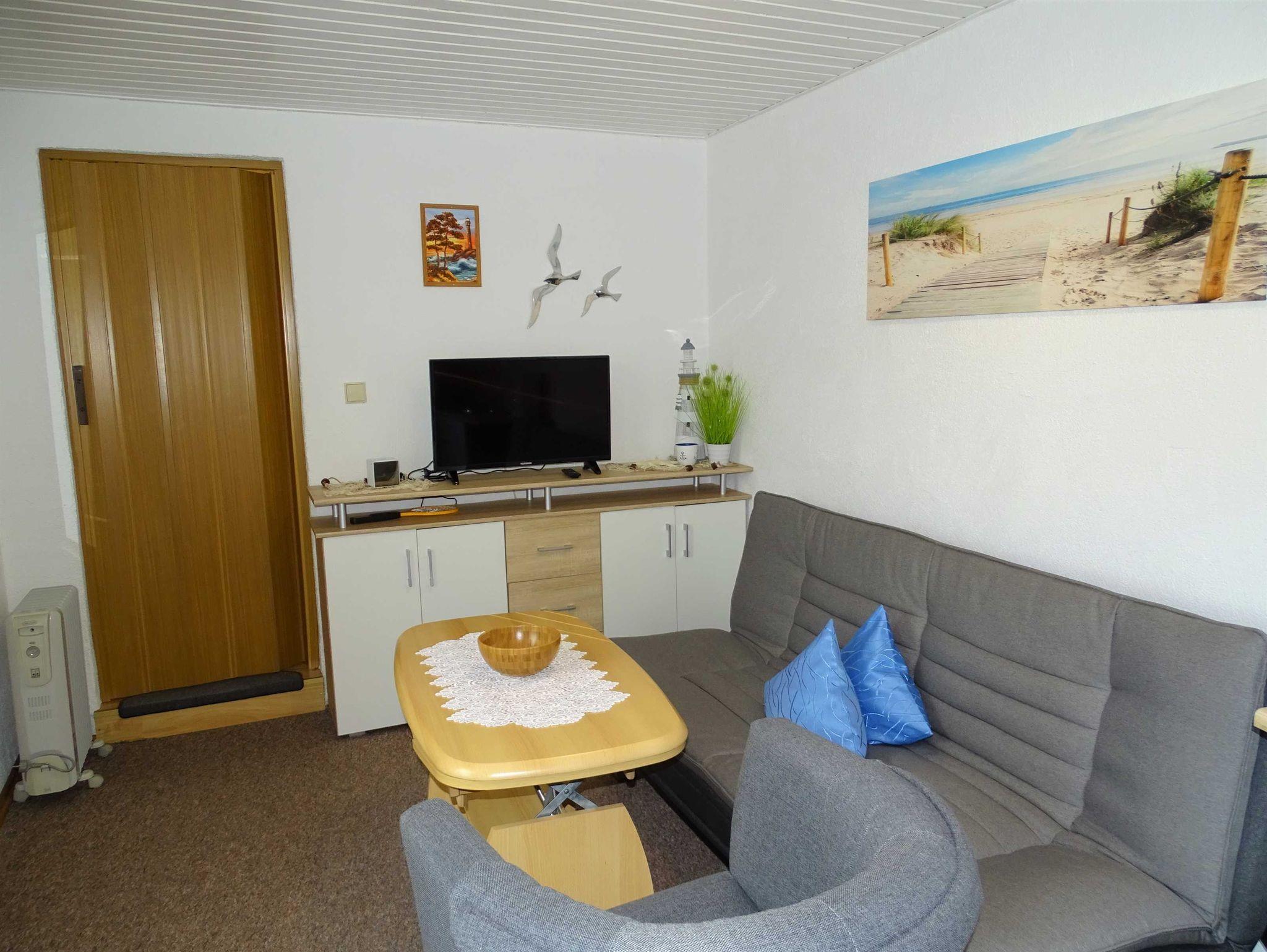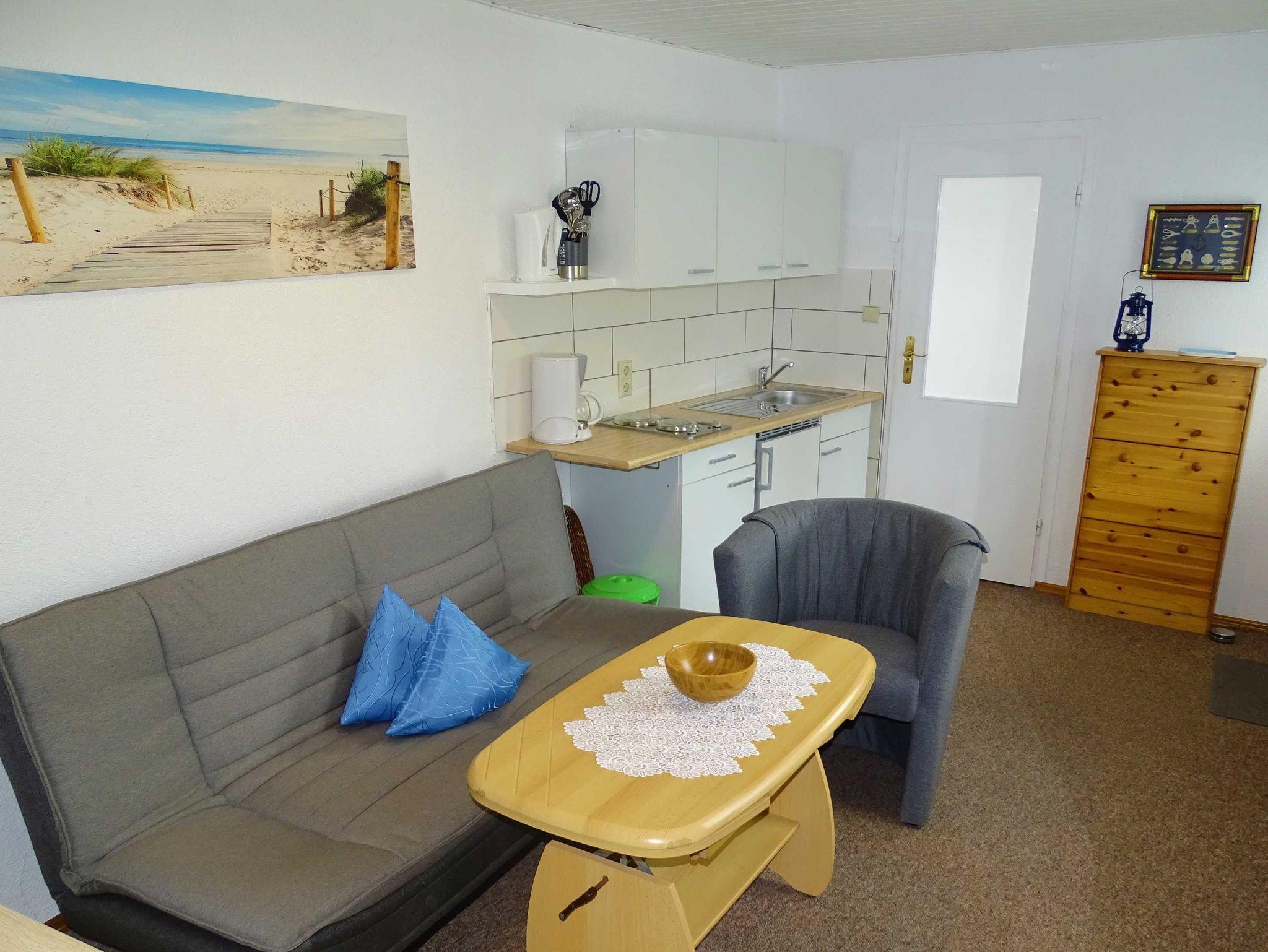 Zu Ihrer Ferienwohnung gehört ein gemütlicher Wohnraum mit integrierter Mini-Küche (2-Platten-Kocher, Kühlschrank, Spülbecken), Kaffemaschine, Toaster und Geschirr gehören zur Küchenausstattung natürlich dazu. Im Schlafzimmer befindet sich ein Doppelbett, ein Kleiderschrank und ein Einzelbett, das Bad verfügt über Dusche und WC. Das im Wohnraum befindliche Sofa dient nicht als Aufbettungsmöglichkeit (keine Schlafcouch)! Die Erstausstattung Bettwäsche ist inklusive, Handtücher bringen Sie bitte selbst mit. Das Rauchen ist in der Wohnung nicht erwünscht.