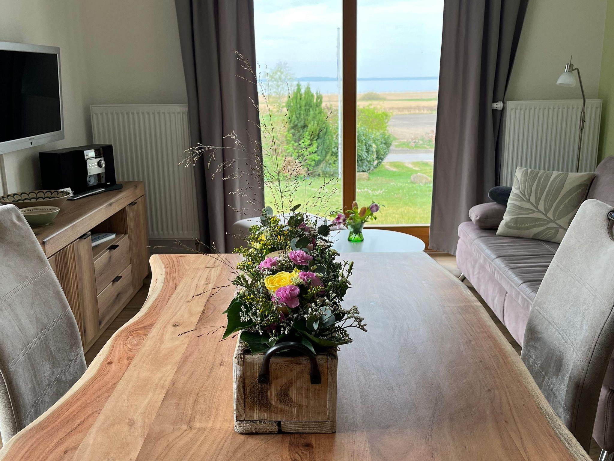 Gemütliche Ferienwohnung mit traumhaftem Blick auf das Achterwasser in Loddin, ideal für Familien mit zwei Kindern.