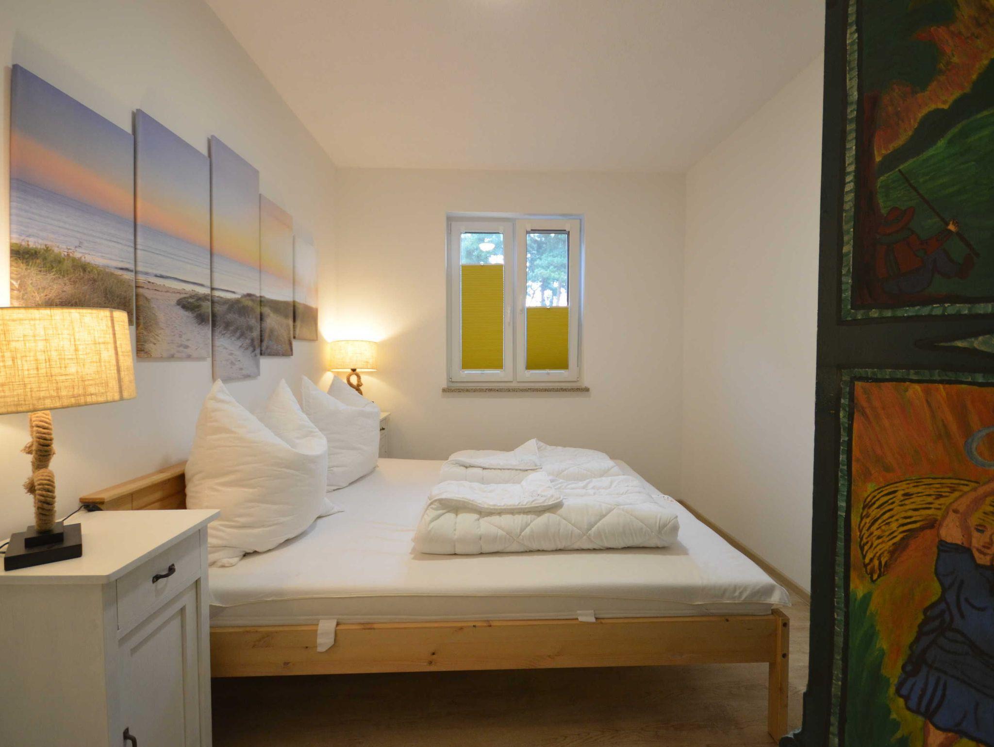 • Schlafzimmer 3 in der Fewo 3 ist mit einem Doppelbett und einem Einzelbett und in der Fewo 4 mit 3 Einzelbetten ausgestattet, wo jeweils 3 Personen Platz finden. Fliegengitter und Verdunkelungsrollo.