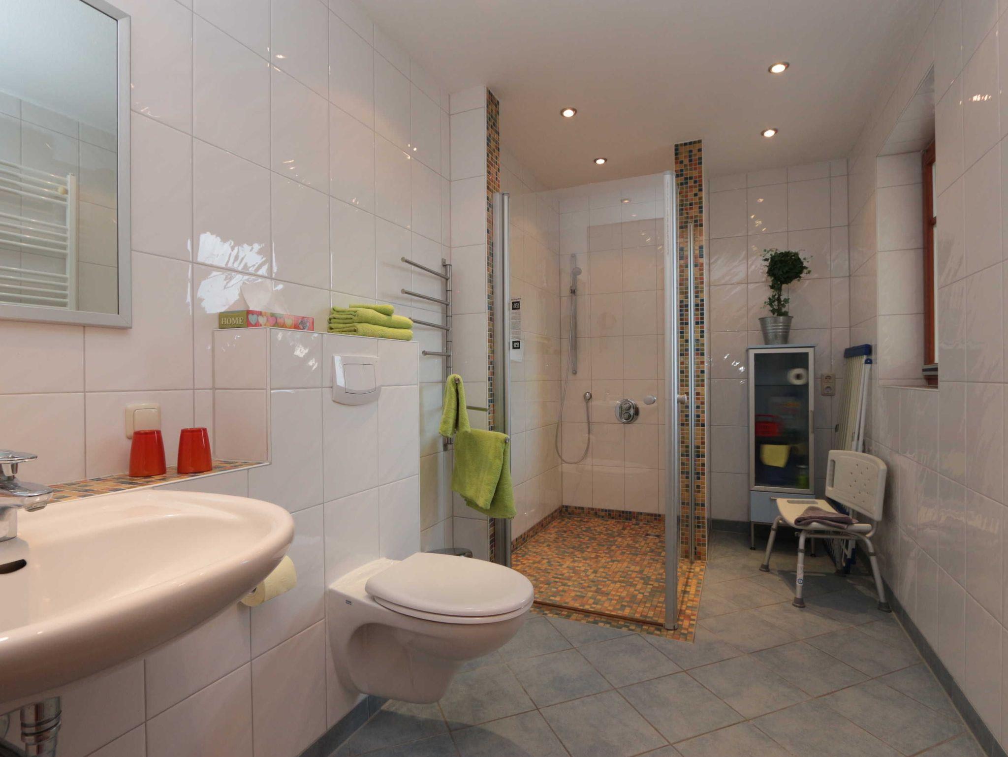 • Diese Ferienwohnung ist behindertenfreundlich mit einer großen befahrbaren Dusche und ca. 90cm breiten Innentüren ausgestattet. Die Wohnung ist ebenerdig erreichbar.