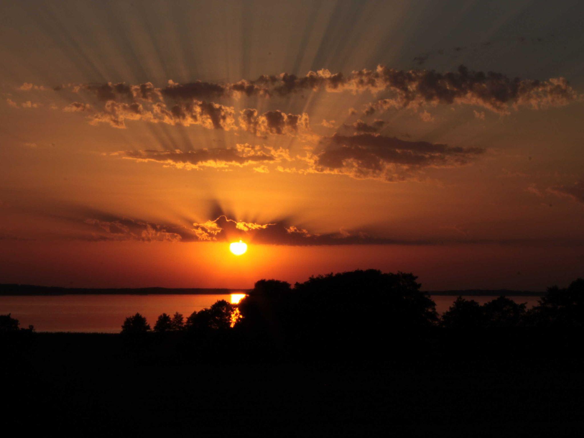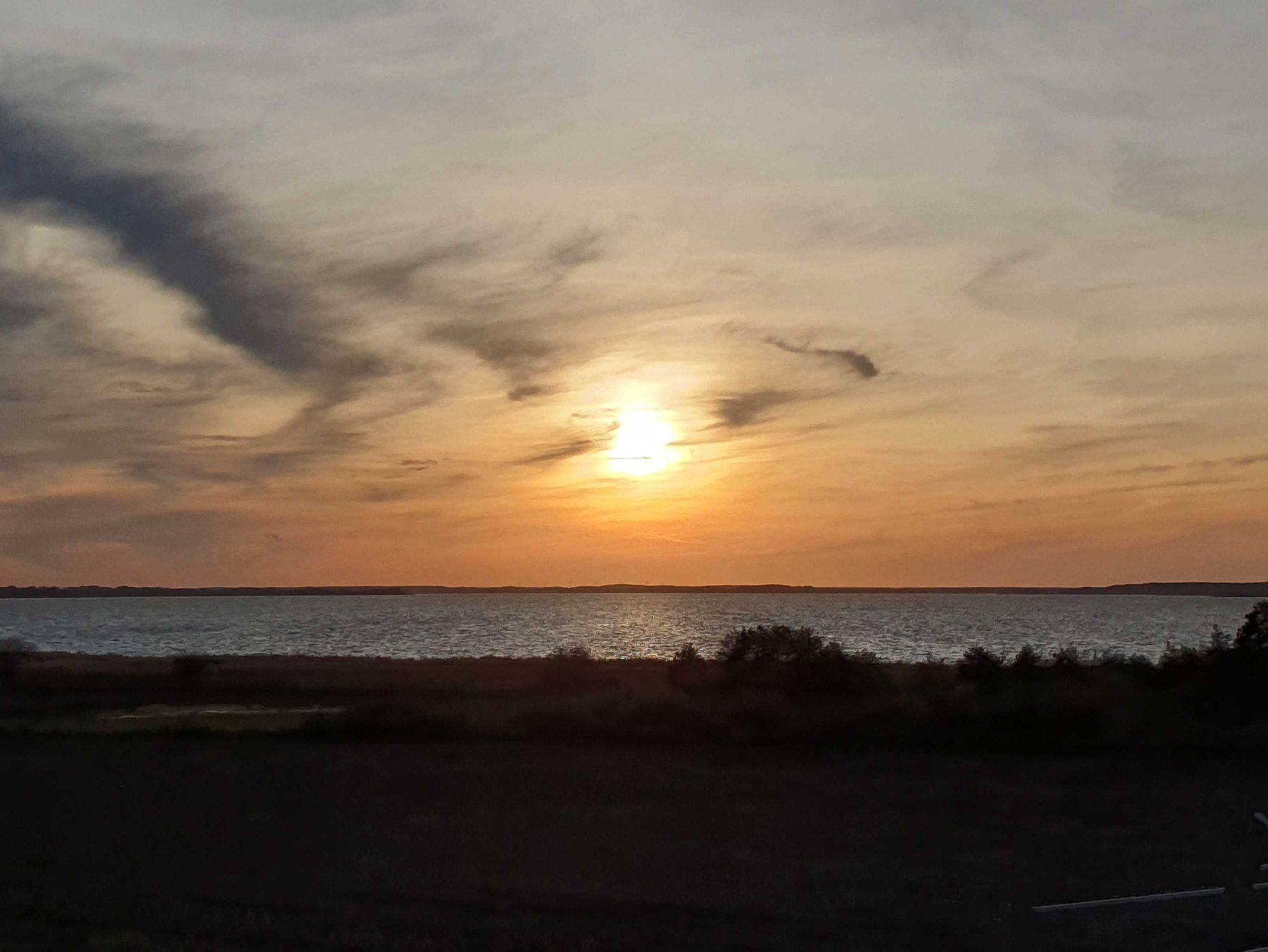 Aus der Wohnung haben Sie einen herrlichen Ausblick auf das Achterwasser und können auch die wunderschönen Sonnenuntergänge beobachten.