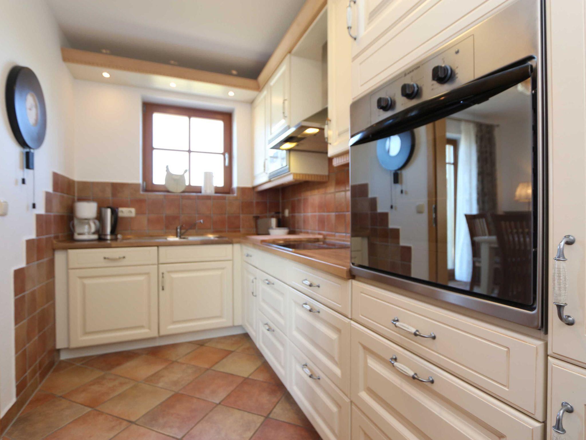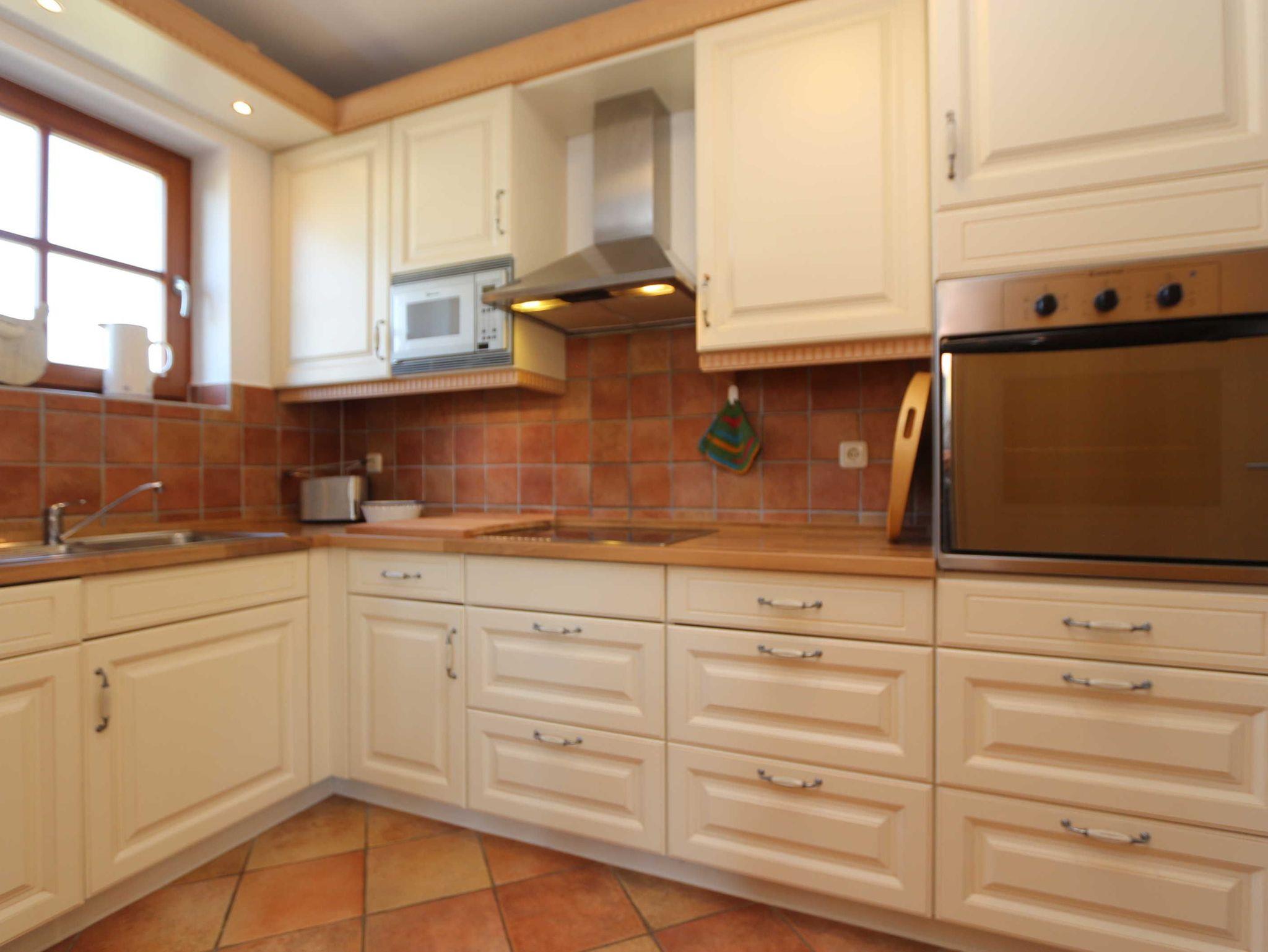 - Küche mit Einbauküche, Spülmaschine, Backofen, Glaskeramikkochfeld, Mikrowelle, Wasserkocher, Kaffeemaschine, Toaster, Mixer, Kühlschrank mit Gefrierfach und reichlich Geschirr;