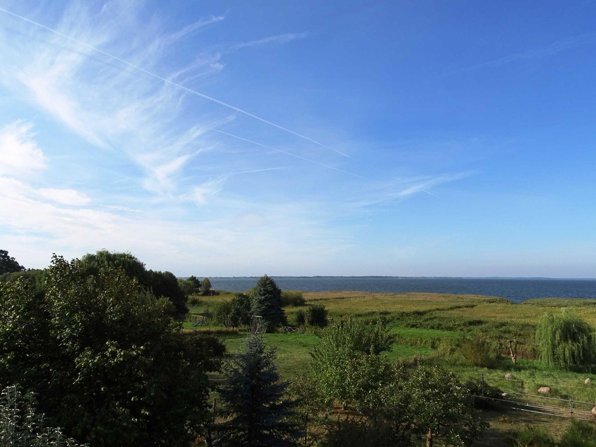 Komfortable Ferienwohnung in Loddin mit Panoramablick auf das Achterwasser und idyllischem Garten.