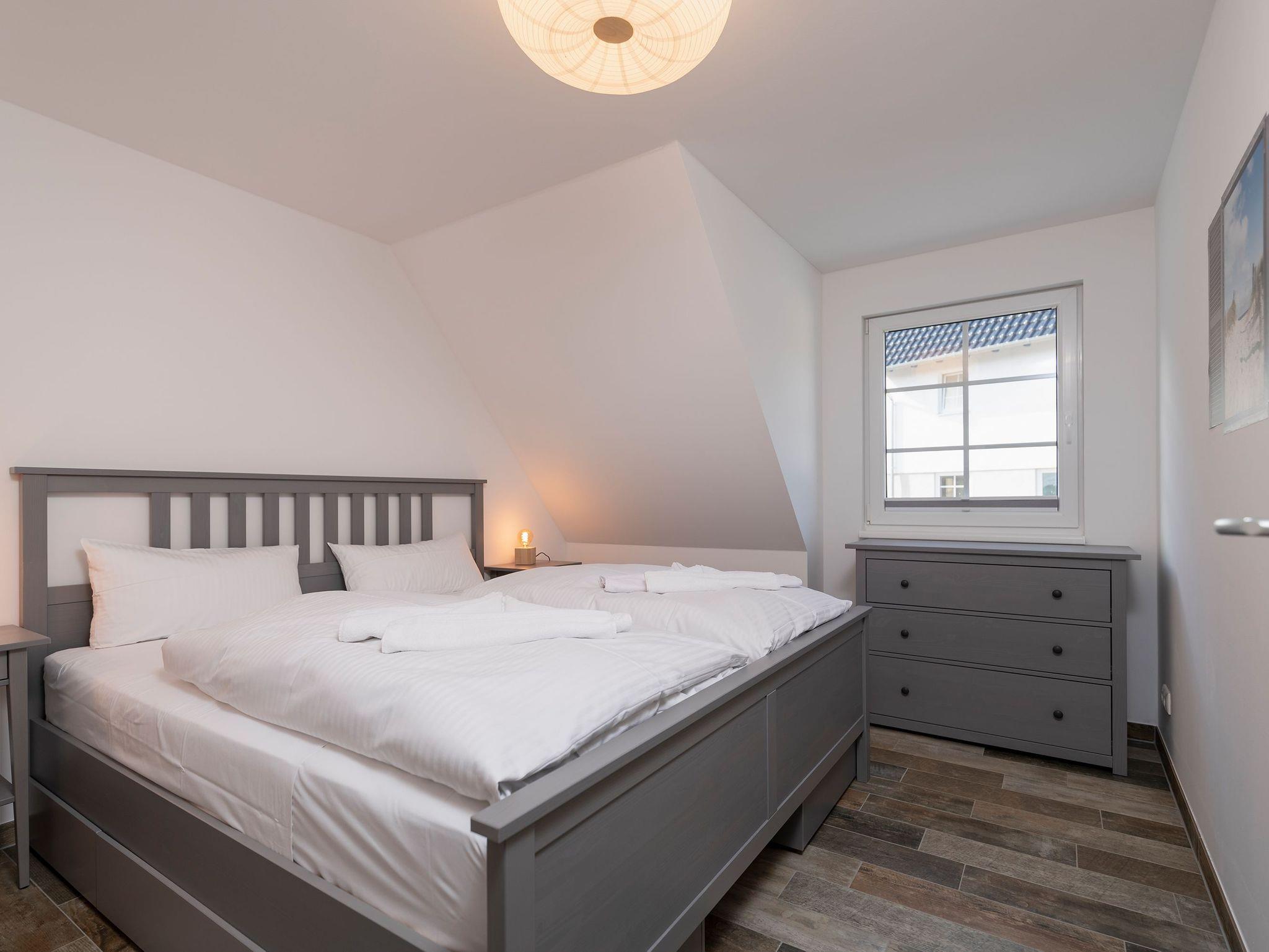 Die Ferienwohnung Schwanensee im Seebad Loddin auf Usedom, nahe dem Achterwasser, bietet eine Oase der Ruhe und Natur. Diese einladende Wohnung im Obergeschoss verteilt sich auf zwei Etagen und ist perfekt für Familien oder kleine Gruppen, die Entspannung suchen. Im unteren Bereich finden Sie ein großzügiges Schlafzimmer mit einem bequemen Doppelbett sowie ein zweites Zimmer, ausgestattet mit einem Etagenbett, das zu einem weiteren Doppelbett (1,60 m) umfunktionierbar ist, ergänzt durch ein Babybett für die jüngsten Gäste. Ein modernes Badezimmer mit Dusche und Badewanne sowie eine Waschmaschine stehen für Ihren Komfort bereit.