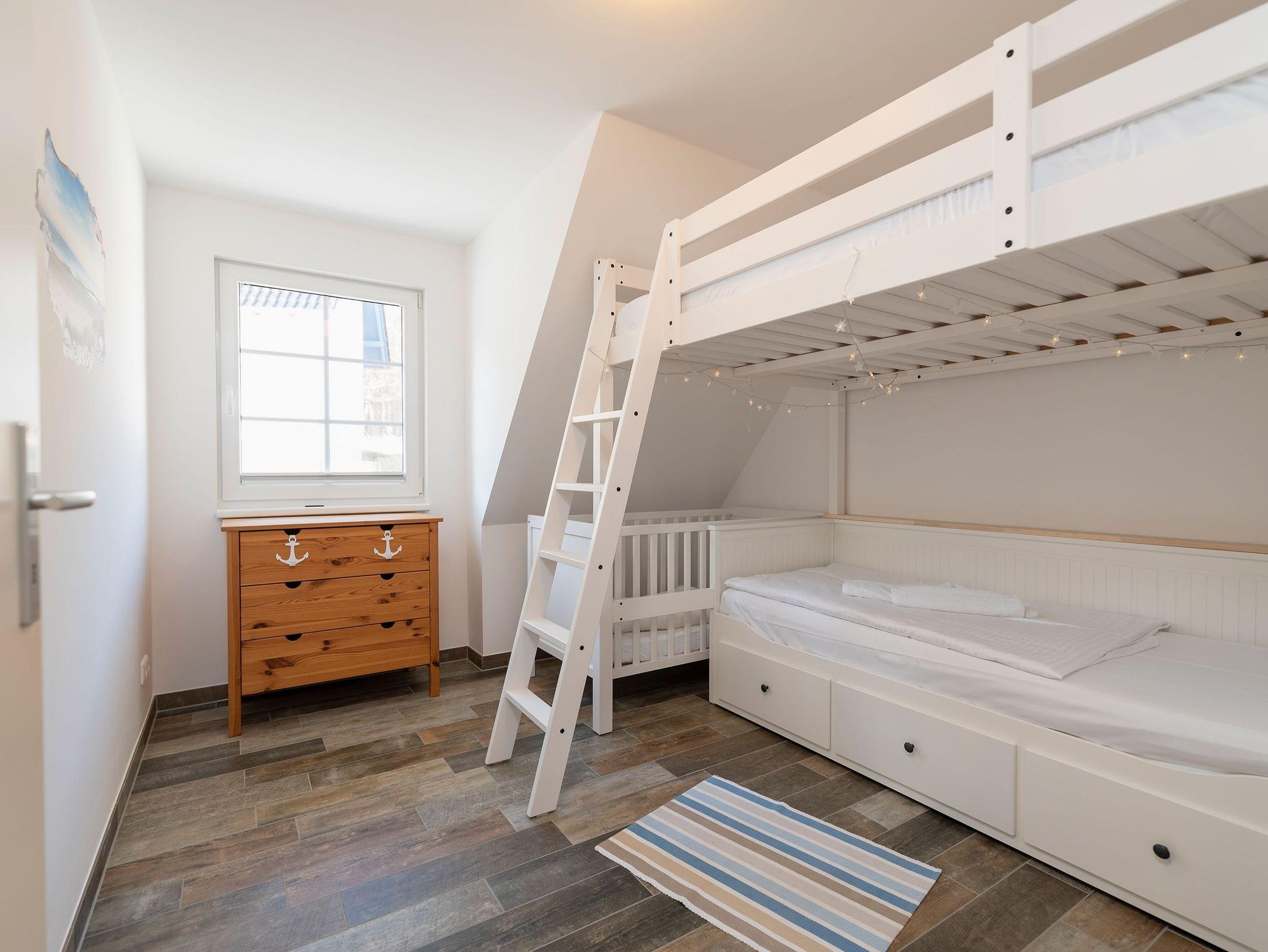 • 2.Schlafzimmer mit Etagenbett, Ausziehbett und Babybett