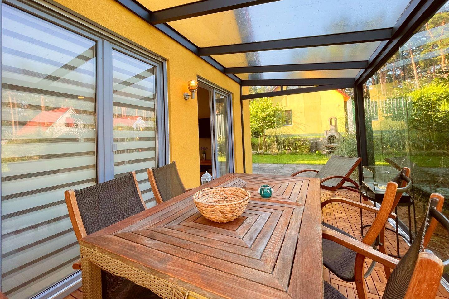 Gemütliches Ferienhaus mit Terrasse und Gartenblick, nur 2 km vom Strand Usedoms entfernt.
