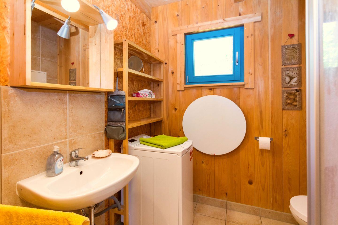 Die zwei liebevoll eingerichteten Schlafzimmer gewährleisten einen erholsamen Schlaf nach einem erlebnisreichen Tag in der Natur. Ein Badezimmer mit Dusche rundet das Wohnkonzept ab und bietet Ihnen den nötigen Komfort. Für gemütliche Abende sorgt der Kaminofen im Wohnbereich, der eine wohlige Atmosphäre schafft. Eine große Terrasse mit Gartenmöbeln lädt ein, die frische Luft und den Blick ins Grüne zu genießen – perfekte Bedingungen für entspannte Stunden im Freien.