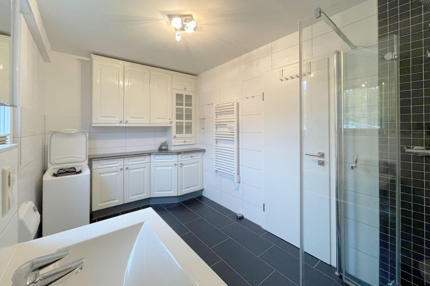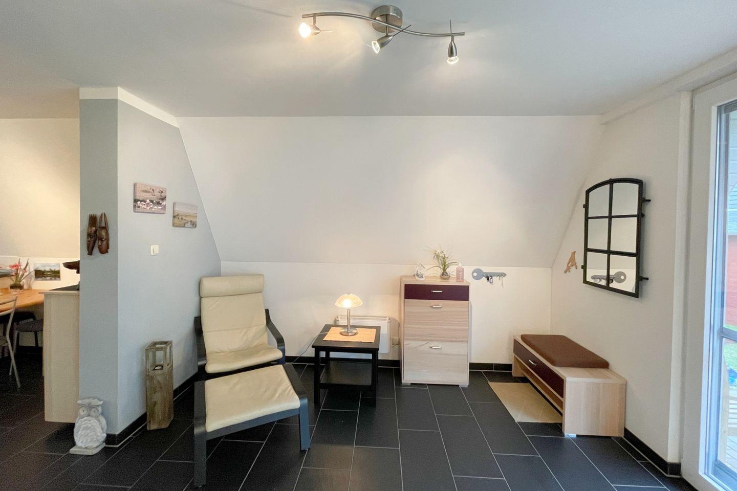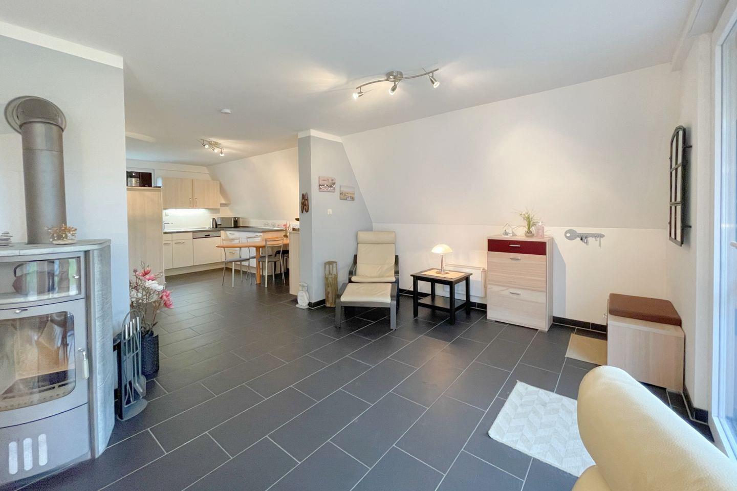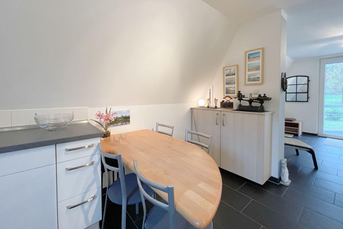 Die modern eingerichtete Küche, die offen zum Wohnzimmer gestaltet ist, lädt dazu ein, gemeinsam leckere Mahlzeiten zuzubereiten. Sie finden hier alle notwendigen Küchengeräte, darunter einen Herd, Kühlschrank, Spülmaschine und eine Mikrowelle. Ein Essbereich für gemütliche gemeinsame Mahlzeiten rundet das Angebot ab. Nach dem Genuss Ihrer selbstgekochten Delikatessen können Sie sich im stilvollen Wohnzimmer entspannen und den Blick auf den zum Verweilen einladenden Kaminofen genießen.