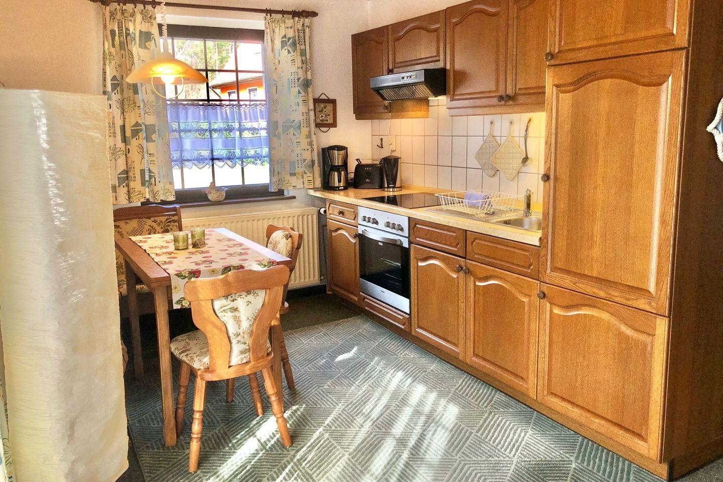 Die separate, geschlossene Küche ist mit hochwertigen Küchenutensilien ausgestattet und lässt keine Wünsche offen, ob beim Frühstück oder Abendessen. Genießen Sie Ihre Mahlzeiten am Esstisch oder auf der großen, sonnigen Terrasse, die mit Gartenmöbeln ausgestattet ist. Hier können Sie die frische Ostseebrise und den Blick ins Grüne genießen.
