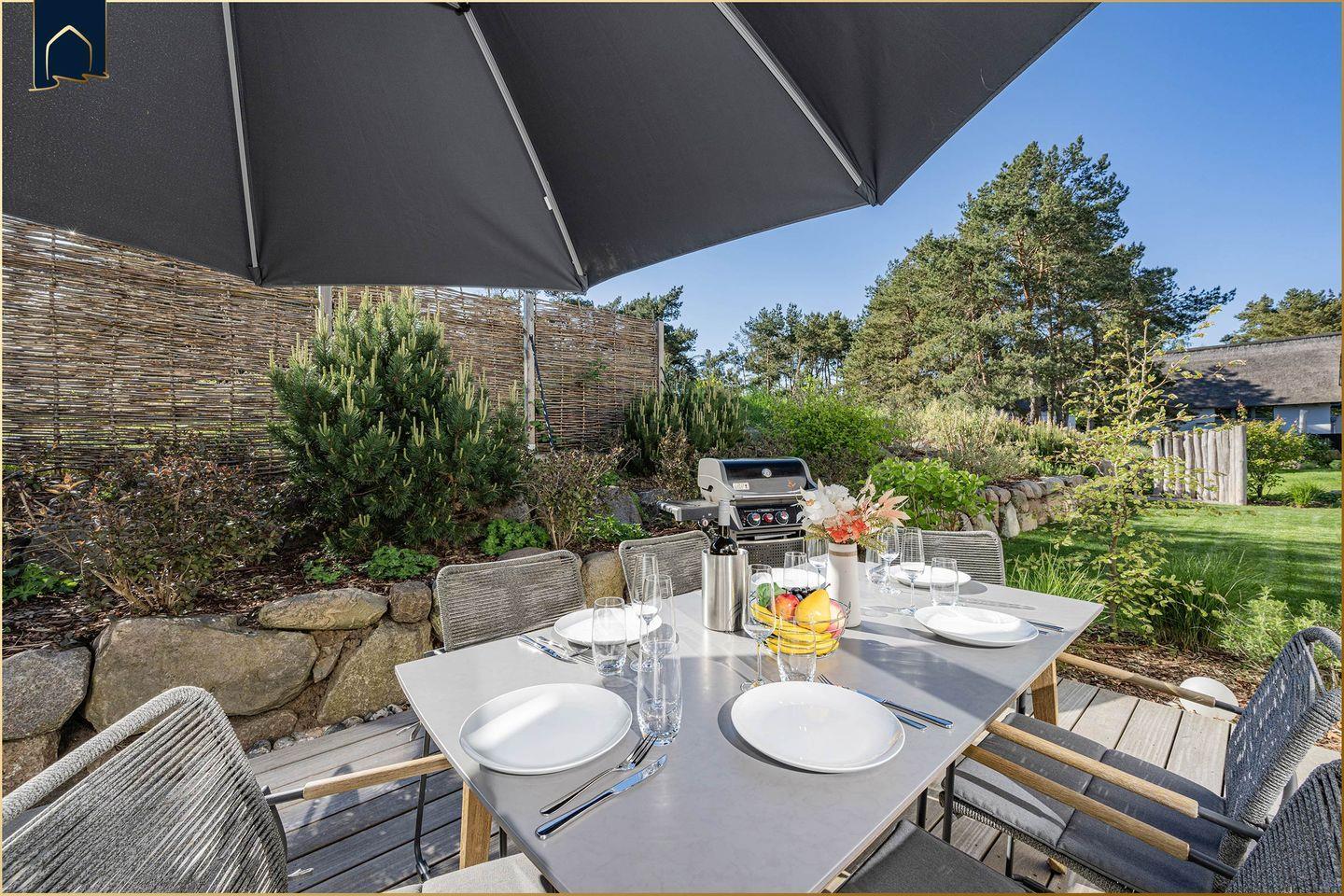 Nach einem Tag voller Inselabenteuer bietet die exklusive finnische Sauna des Reethauses den perfekten Rückzugsort zur Entspannung. Die beiden Wellnessliegen verstärken das Erholungserlebnis. Der liebevoll gestaltete Garten mit Süd-West-Ausrichtung und die großzügige Holzterrasse mit Weber-Gasgrill laden zu ausgedehnten Grillabenden und geselligen Runden an der frischen Inselluft ein. Das Reethus vereint somit stilvollen Wohnkomfort mit einem Hauch von Luxus und stellt sicher, dass jeder Urlaubstag zu einem unvergesslichen Erlebnis wird.