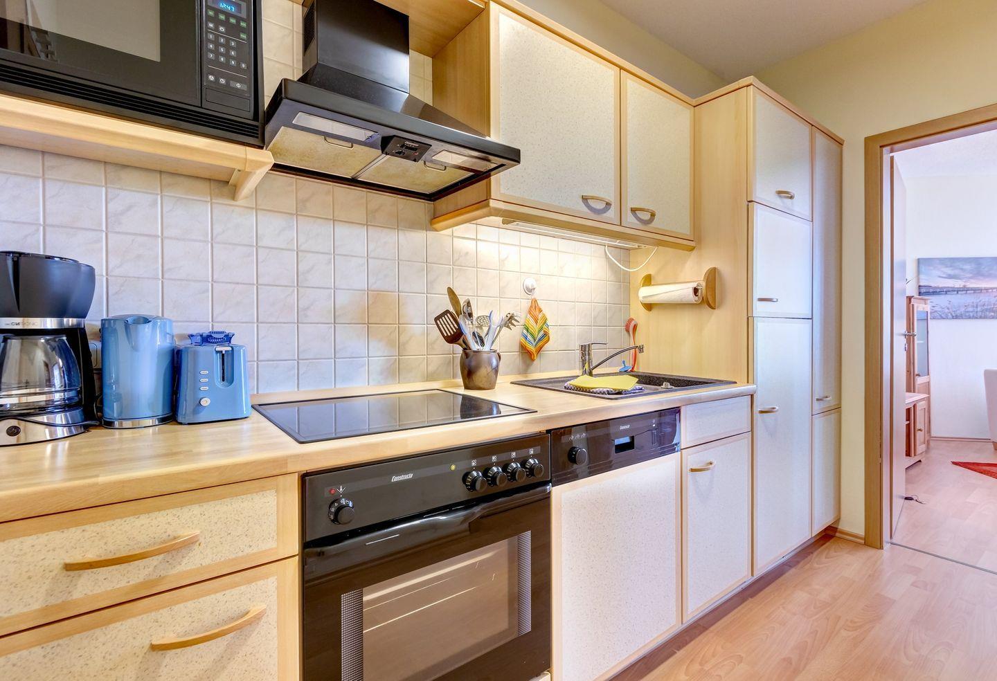 Im Eingangsbereich der Wohnung erwartet Sie eine voll ausgestattete Einbauküche.