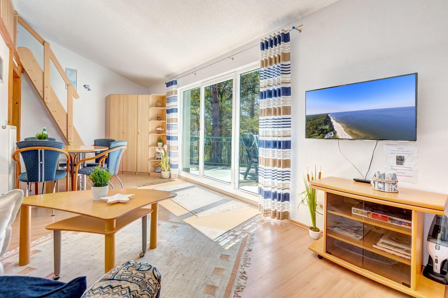 Gemütliche Ferienwohnung Krabbengalerie in Loddin mit Südbalkon und Blick auf das Achterwasser.