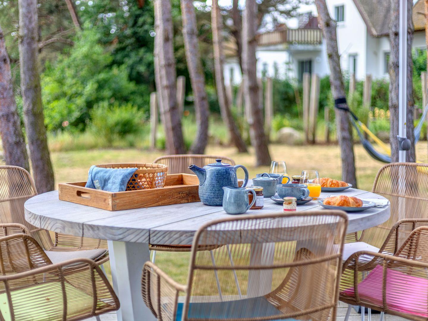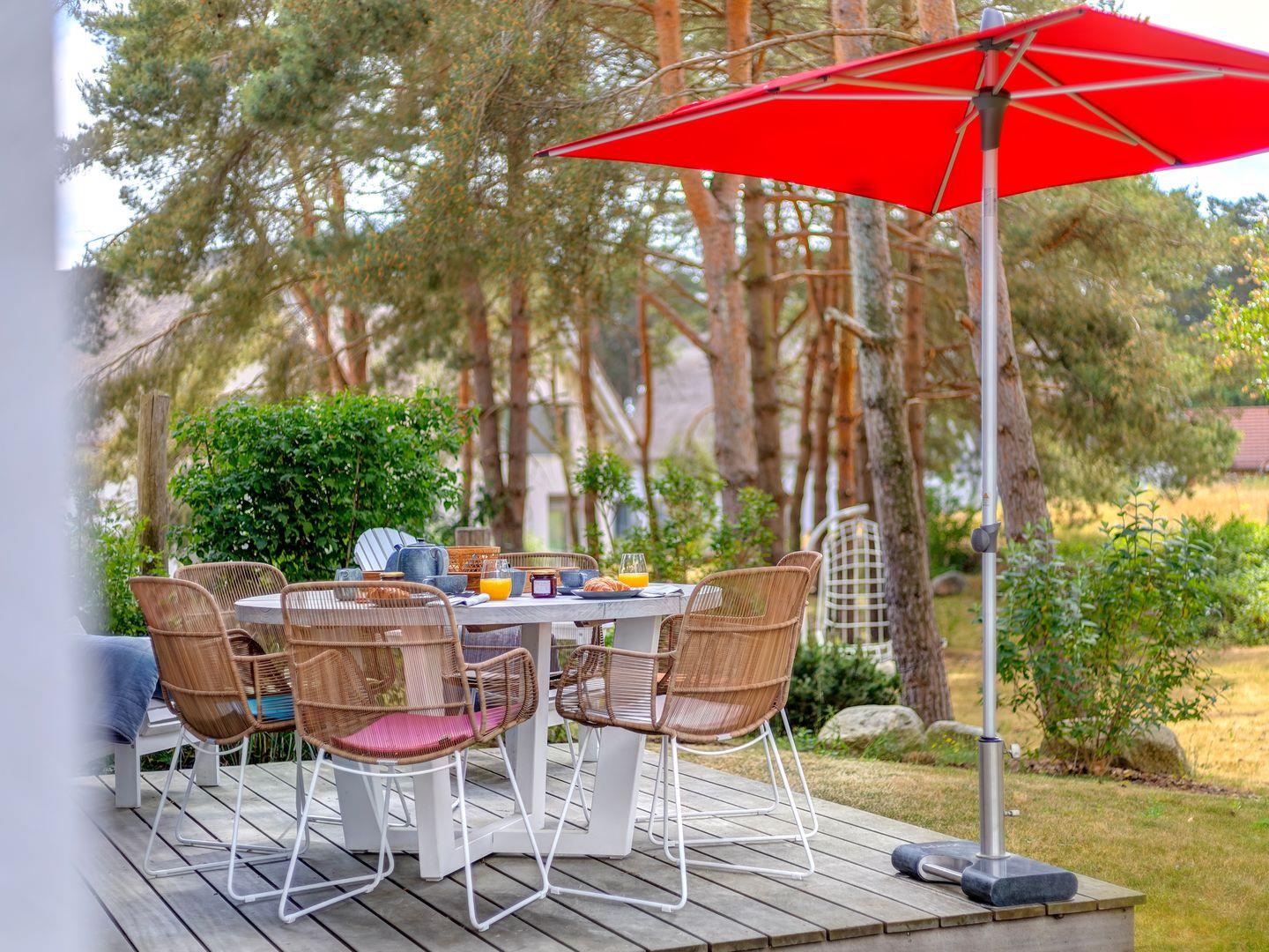 Freuen Sie sich auf ca. 135 qm Wohnfla¨che mit hochwertiger Ausstattung, 700 qm Grundstu¨ck mit kleinem Kiefernwa¨ldchen, 3 Schlafzimmer, 2 Badezimmer und 3 WC, WLAN, eigene Ladestation für Ihr E-Auto, Kaminofen, Sauna, Grill, Garten und Terrasse; Entfernung zum Sandstrand ca. 2 km, Achterwasser ca. 400 m, 2 Restaurants in ca. 800 m.