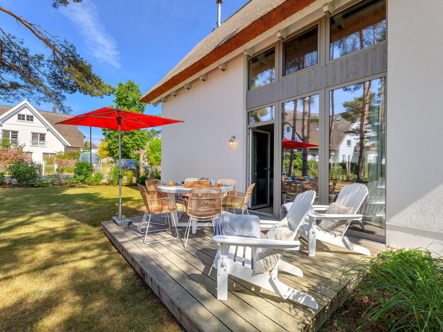 Das mit 5-DTV-Sternen***** zertifiziertes Luxus-Reethaus in idyllischer Lage mit eigenem Kiefernwäldchen, Sauna und E-Auto-Ladestation.