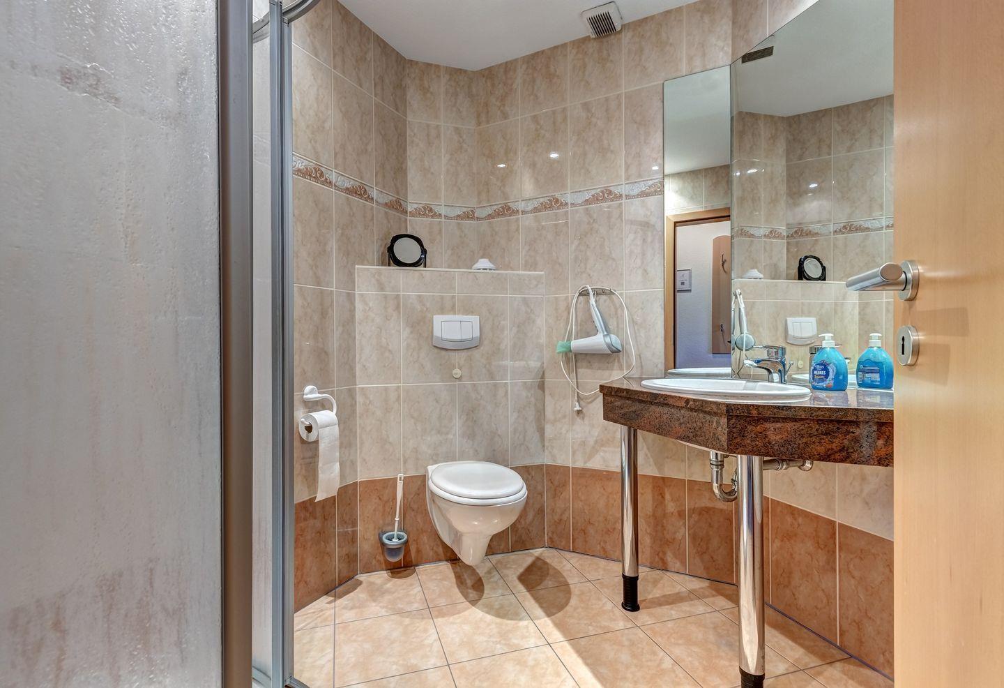 Das Badezimmer ist mit einer Dusche und WC ausgestattet.