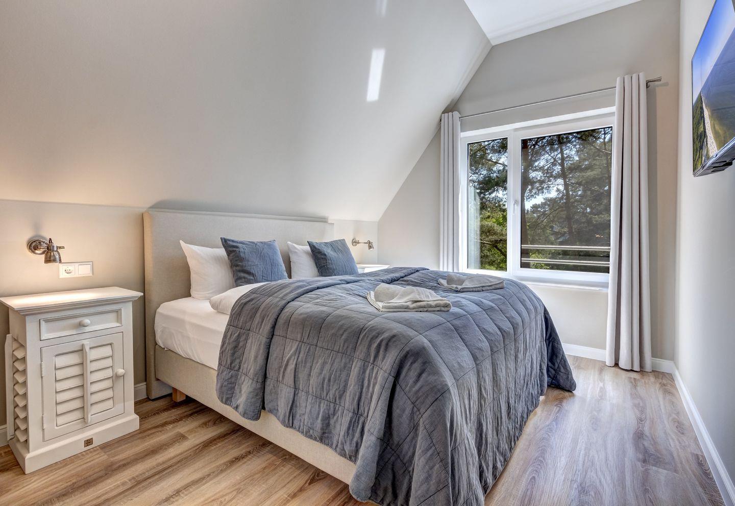 Es verfügt über drei Schlafzimmer, eine Sauna, einen kleinen Wellnessbereich, zwei hochwertig ausgestattete Badezimmer mit begehbaren Duschen sowie ein zusätzliches WC.