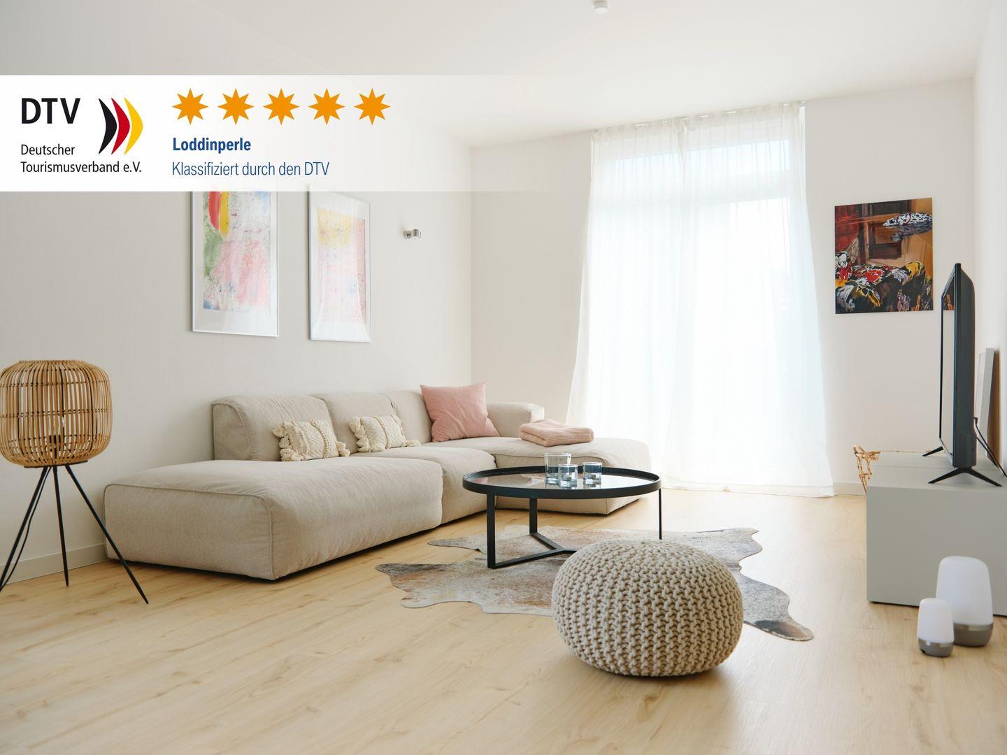 Auf ca.147 qm verteilt über zwei Etagen können Sie die mit den 5-DTV-Sternen zertifizierte „Loddinperle“ mit bis zu 6 Personen gemütlich bewohnen. Der großzügige, lichtdurchflutete Wohn- und Essbereich mit offener Küche inklusive Kochinsel lädt zum gemeinsamen Kochen und Verweilen ein. Die „Loddinperle“ verfügt über 3 separate Schlafzimmer (2 Zimmer mit Doppelbett und 1 Zimmer mit 2 Einzelbetten) und zwei hochwertig ausgestattete Bäder mit Walk-in Duschen.