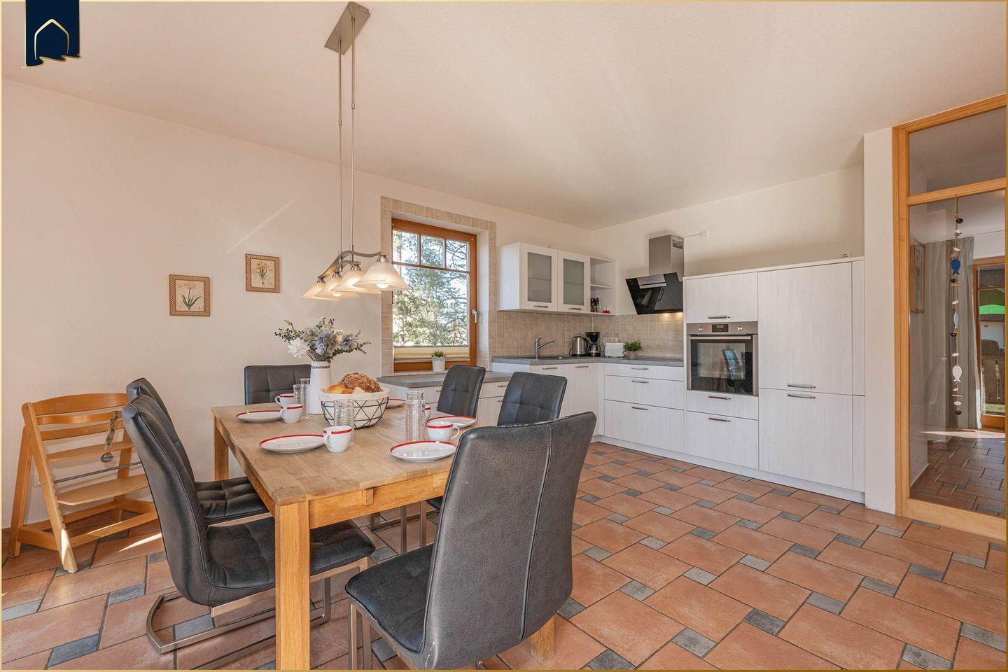Im Inneren überzeugt die Ferienwohnung mit einer modernen Ausstattung und viel Liebe zum Detail. Zwei gemütliche Schlafzimmer, ein helles Wohnzimmer mit TV und Sofaecke sowie ein Badezimmer mit Dusche und ein zusätzliches Gäste-WC sorgen für Komfort und Behaglichkeit. Die voll ausgestattete Küche verfügt über Backofen, Herd, Spülmaschine, Mikrowelle, Kaffeemaschine, Wasserkocher, Toaster sowie reichlich Geschirr und Küchenutensilien – perfekt für Selbstversorger.