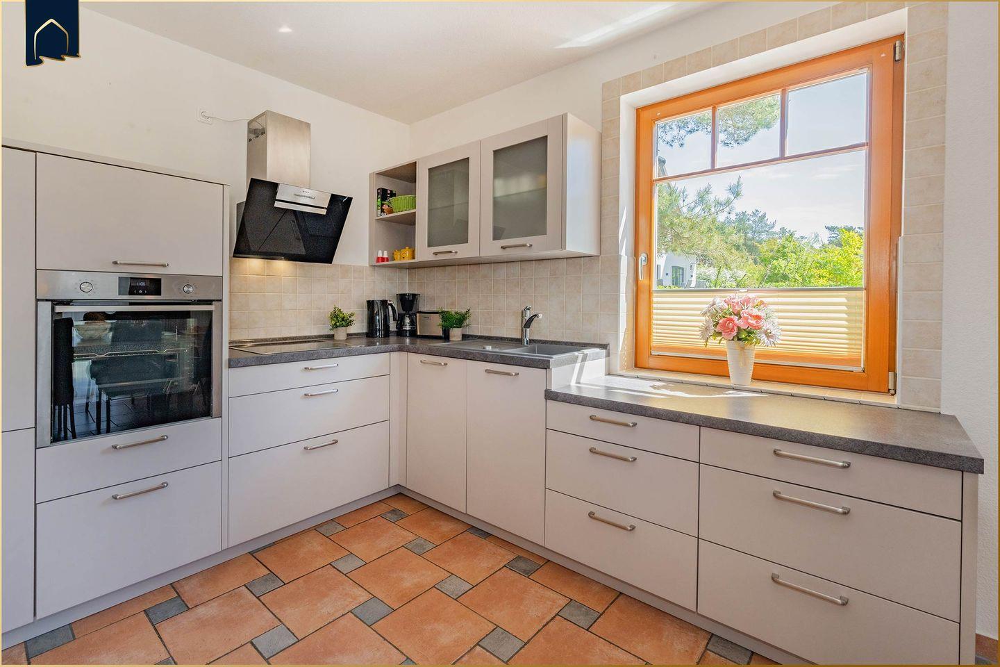 Zur Ausstattung gehören kostenloses WLAN, Flachbild-TV, eine moderne Küche mit Spülmaschine, Backofen, Mikrowelle, Kaffeemaschine, Toaster und Wasserkocher. Auch Waschmaschine, Wäscheständer, Staubsauger und Fliegengitter sind vorhanden. Ein Privatparkplatz und Fahrradstellplätze runden das Angebot ab. Einkaufsmöglichkeiten und Restaurants sind in wenigen Minuten erreichbar – ideal, um Usedom entspannt zu erkunden.