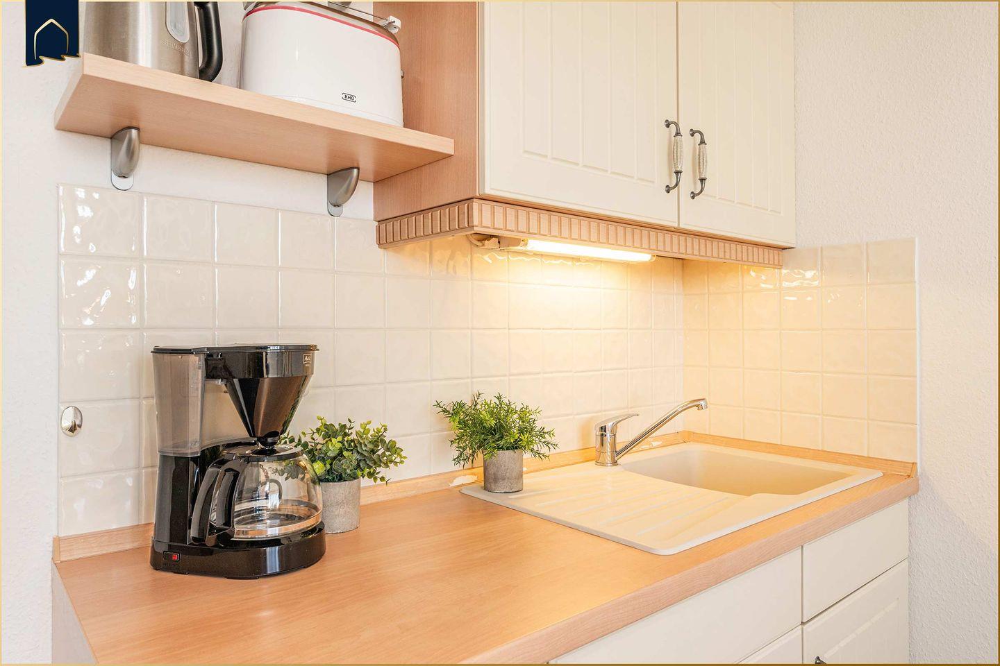 Willkommen in der liebevoll eingerichteten Ferienwohnung Mittagsonne im 1. Obergeschoss des Reetdachhauses „Ostseeglück“ im idyllischen Seebad Loddin auf Usedom. Auf kompakten 24?m² erwartet Sie ein gemütlicher Wohn- und Schlafbereich mit einem komfortablen Doppelbett (1,80?×?2,00?m), Flachbild-TV sowie ein kleiner Essplatz für gemeinsame Stunden. Die Pantryküche ist mit allem ausgestattet, was Sie für die Zubereitung kleiner Mahlzeiten benötigen – inklusive Kühlschrank, Kaffeemaschine, Toaster und Kochfeld.
