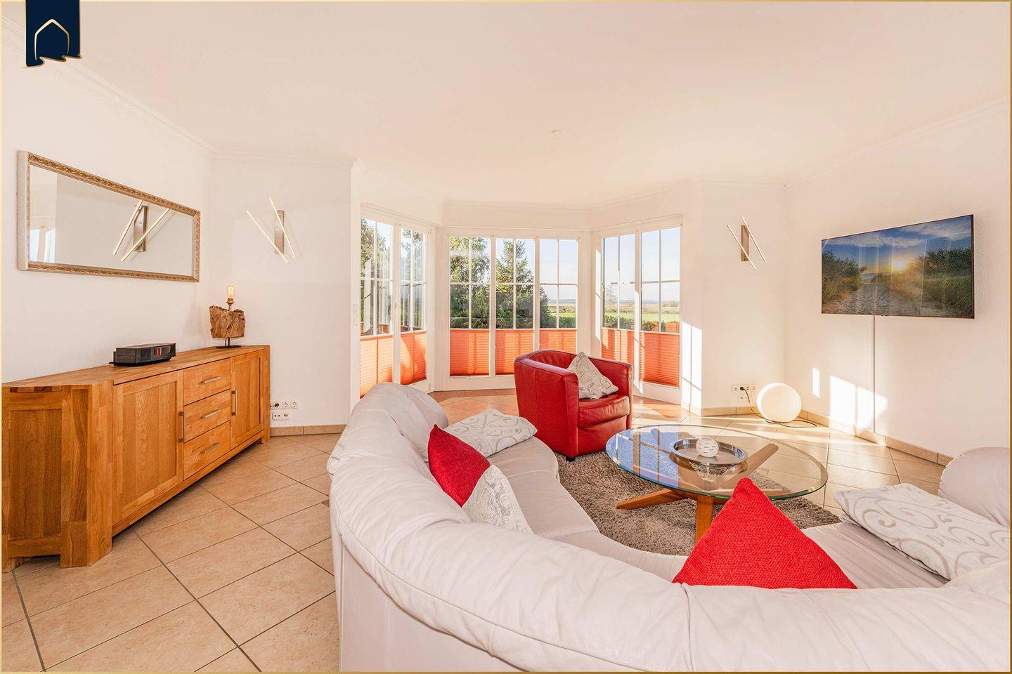 Zwei geschmackvoll eingerichtete Schlafzimmer mit Doppelbetten garantieren erholsamen Schlaf. Bei Bedarf bieten hochwertige Zustellbetten Platz für zwei weitere Personen. Das große Badezimmer verwöhnt mit Badewanne, separater Dusche und Fußbodenheizung. Zusätzlich steht ein separates Gäste-WC zur Verfügung. Für entspannte Wellness-Momente sorgt die Gemeinschaftssauna mit Panoramablick und Ruheraum – ideal nach langen Spaziergängen am Strand.