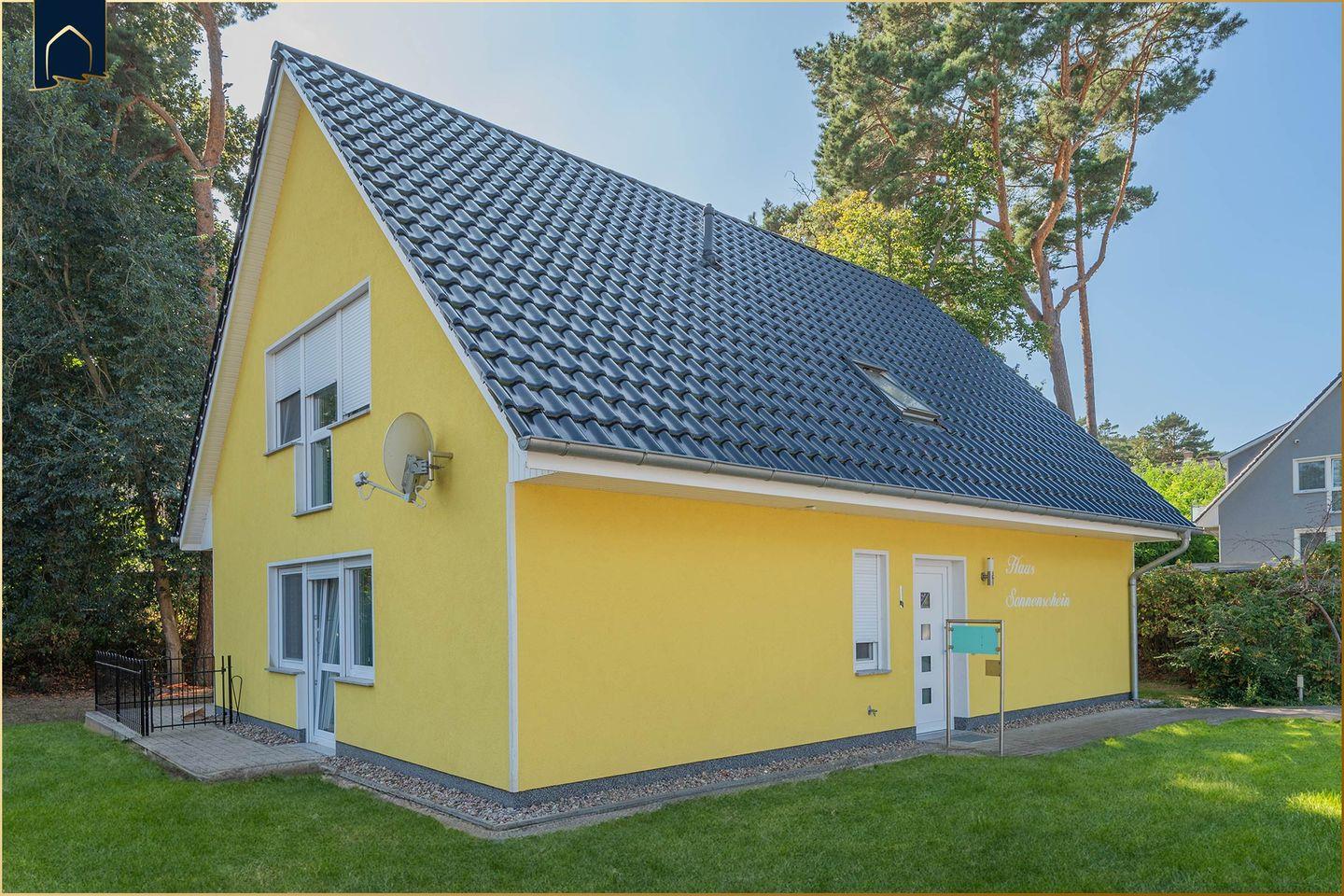 Das freistehende Ferienhaus Sonnenschein EG bietet auf 75 m² Platz für bis zu fünf Gäste. Es verfügt über zwei Schlafzimmer, einen offenen Wohn- und Essbereich mit voll ausgestatteter Küche sowie ein barrierefreies Badezimmer. Zur komfortablen Ausstattung gehören eine eigene Sauna, WLAN, eine überdachte Terrasse, ein großer Garten mit Spielplatz, Privatparkplatz und zahlreiche Familien- und Freizeitangebote. Haustiere sind willkommen.