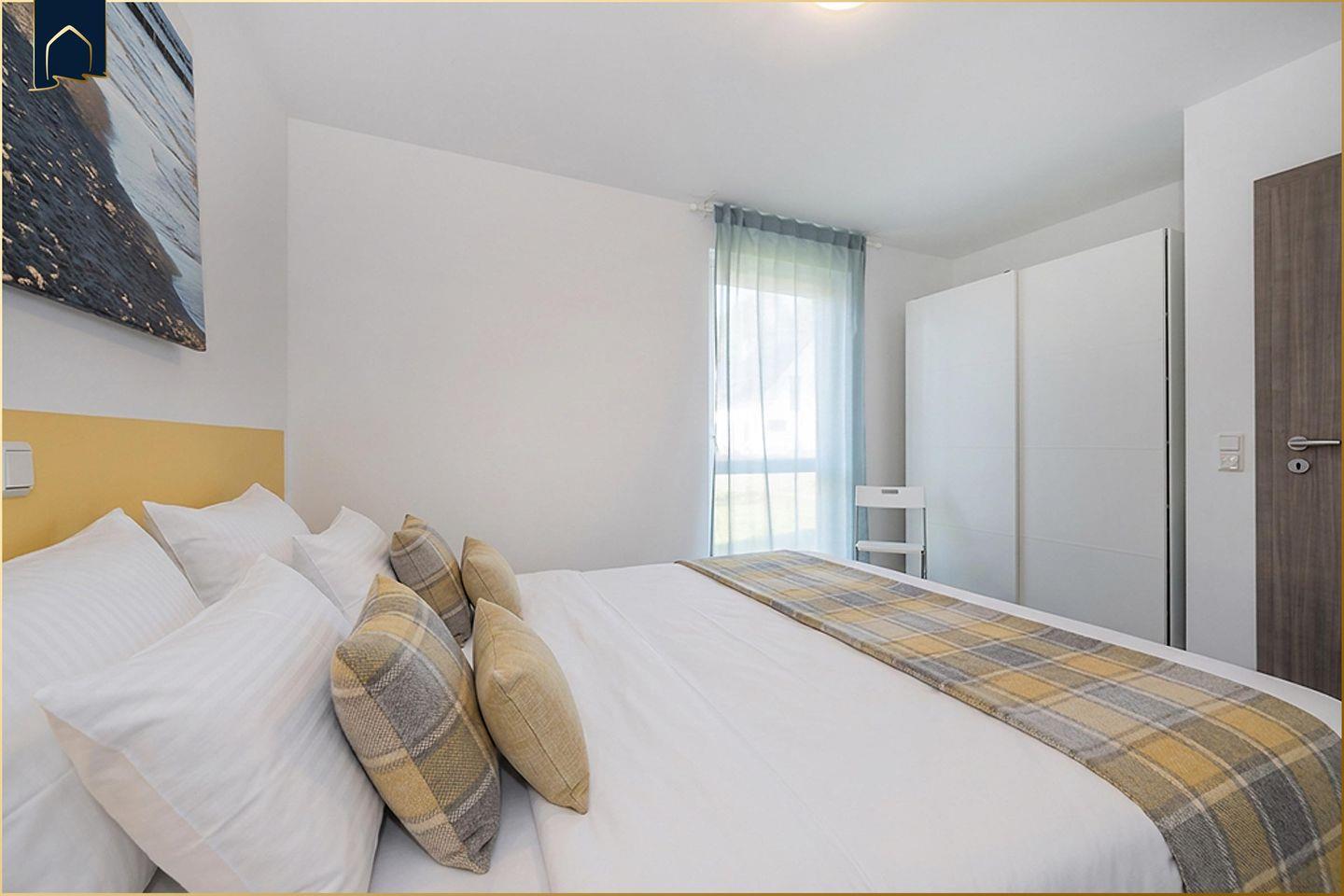 Das Herzstück der Wohnung ist der helle Wohn- und Essbereich mit bequemer Sitzecke, Esstisch, Smart-TV und Zugang zur überdachten Terrasse. Für gemütliche Stunden steht eine private Sauna zur Verfügung – ideal nach einem langen Strandspaziergang oder Ausflug. Die offene Küche ist mit Spülmaschine, Kühlschrank, Gefrierfach, Mikrowelle, Backofen, Cerankochfeld, Kaffeemaschine, Wasserkocher und Mixer bestens ausgestattet. Das Badezimmer verfügt über eine moderne Dusche, Haartrockner und Fußbodenheizung. Zwei Schlafzimmer bieten bequeme Schlafmöglichkeiten, viel Stauraum und hochwertige Bodenbeläge.