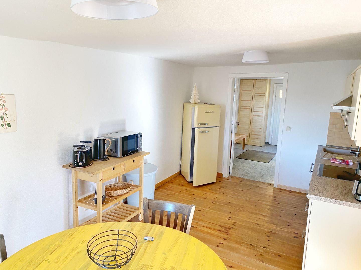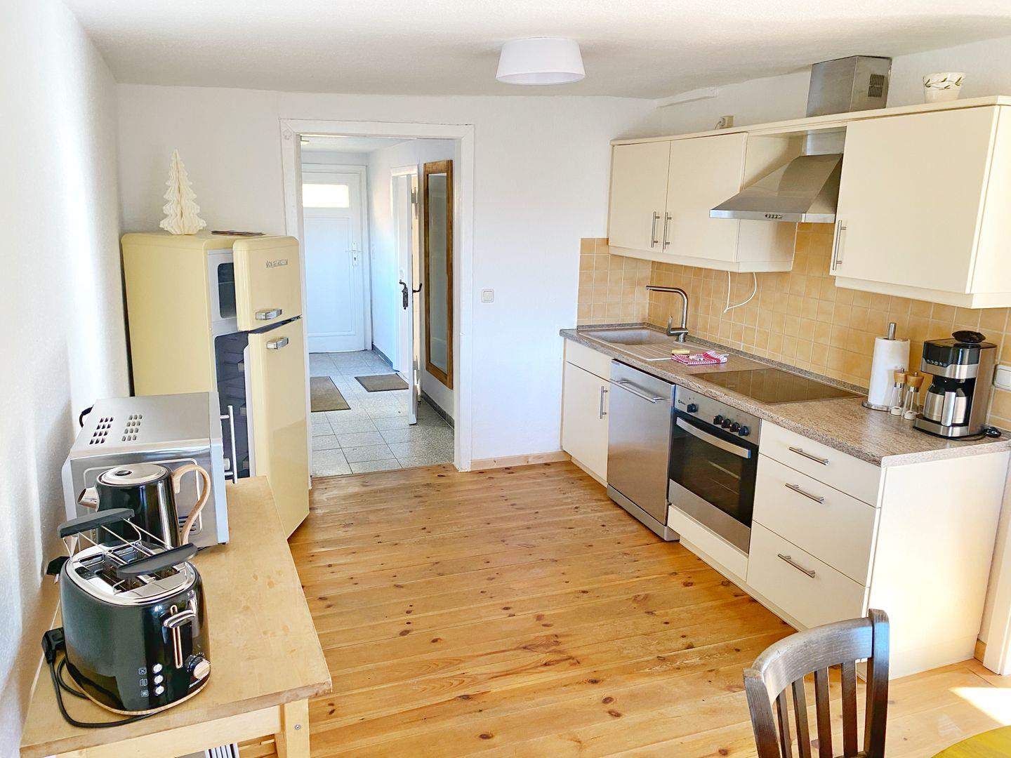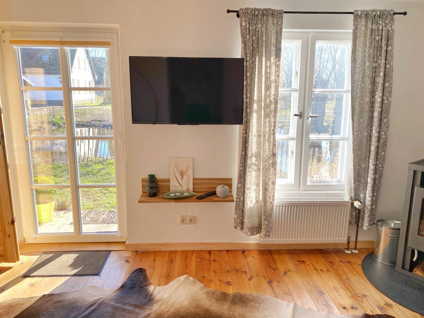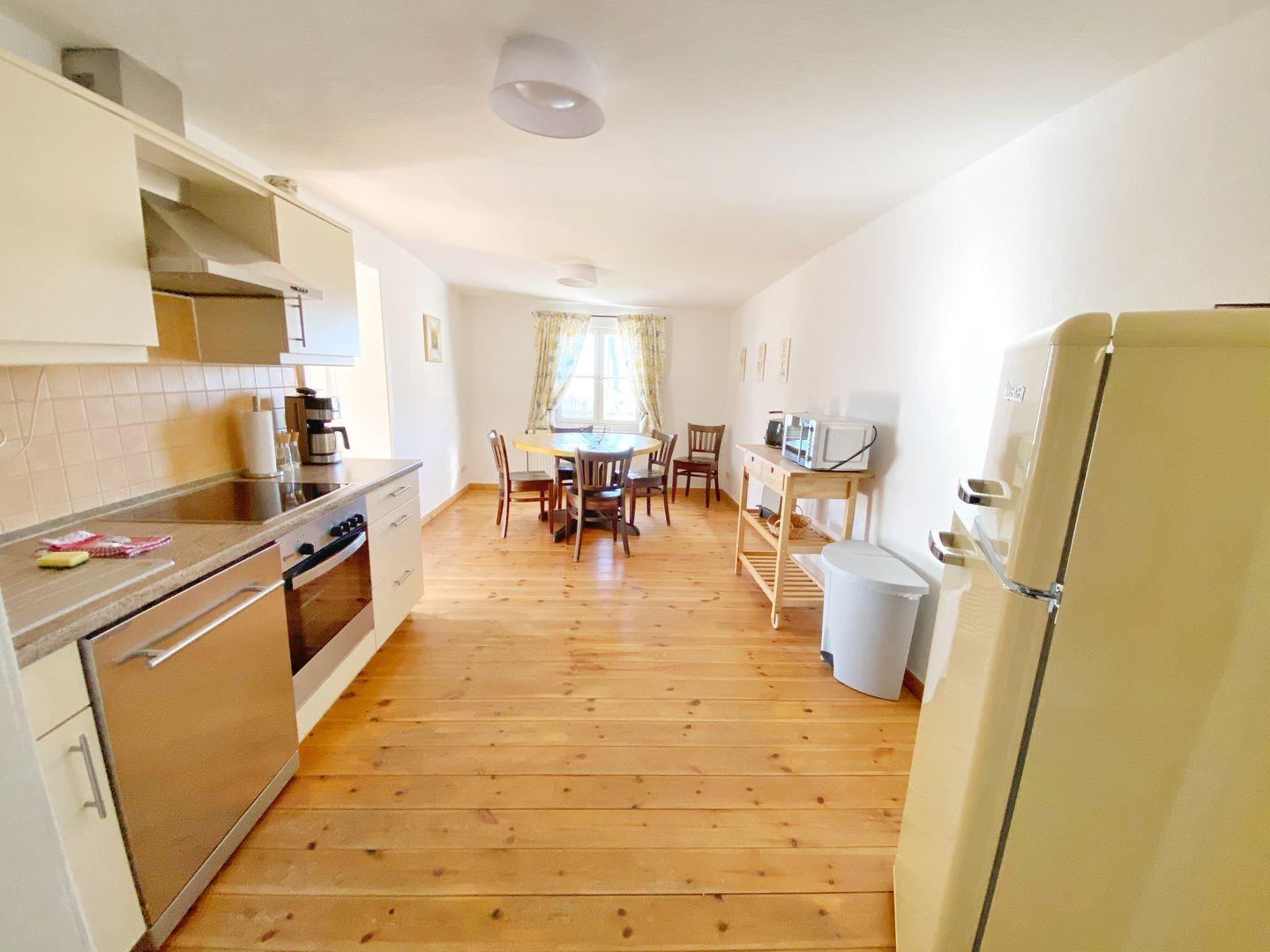 Das in 2019 komplett renovierte Ferienhaus "Alte Mühle" gehört zum Hofgut Bisdamitz und bietet Platz für insgesamt 5 Personen. Das idyllische Ziegelhaus steht auf einem kleinen, umzäunten Grundstück mit Garten und Sitzecke. Auf ca. 90 qm Wohnfläche gibt es drei Zimmer, eine Küche, ein Badzimmer, ein Gäste-WC und Sauna. Das helle Wohnzimmer bietet eine Couchecke, einen Flachbild-TV und einen Kamin für gemütliche Stunden. Über eine Treppe ins Obergeschoß erreicht man die beiden Schlafzimmer: eines davon mit Doppelbett und das andere mit Doppelbett und einem Einzelbett. Die moderne und freundliche Wohnküche bietet neben einem großen Esstisch alle zu einer Küche gehörenden Annehmlichkeiten und Ausstattungen wie Geschirrspüler, Mikrowelle, Ceran-Kochfeld, Backofen, Kühlschrank mit Gefriermöglichkeit und natürlich Kaffeemaschine, Toaster und Wasserkocher. Das Bad im Erdgeschoß verfügt über eine Dusche und WC. Im Obergeschoß gibt es ein weiteres Gäste-WC. Außerdem steht den Gästen eine eigene Sauna zur Verfügung. Das Ferienhaus ist gemütlich im Landhausstil eingerichtet. Zum Haus gehört ein kleiner Garten mit Sitzecke. Das Grundstück ist eingezäunt, so dass Sie dort auch ihre vierbeinigen Freunde laufen lassen.