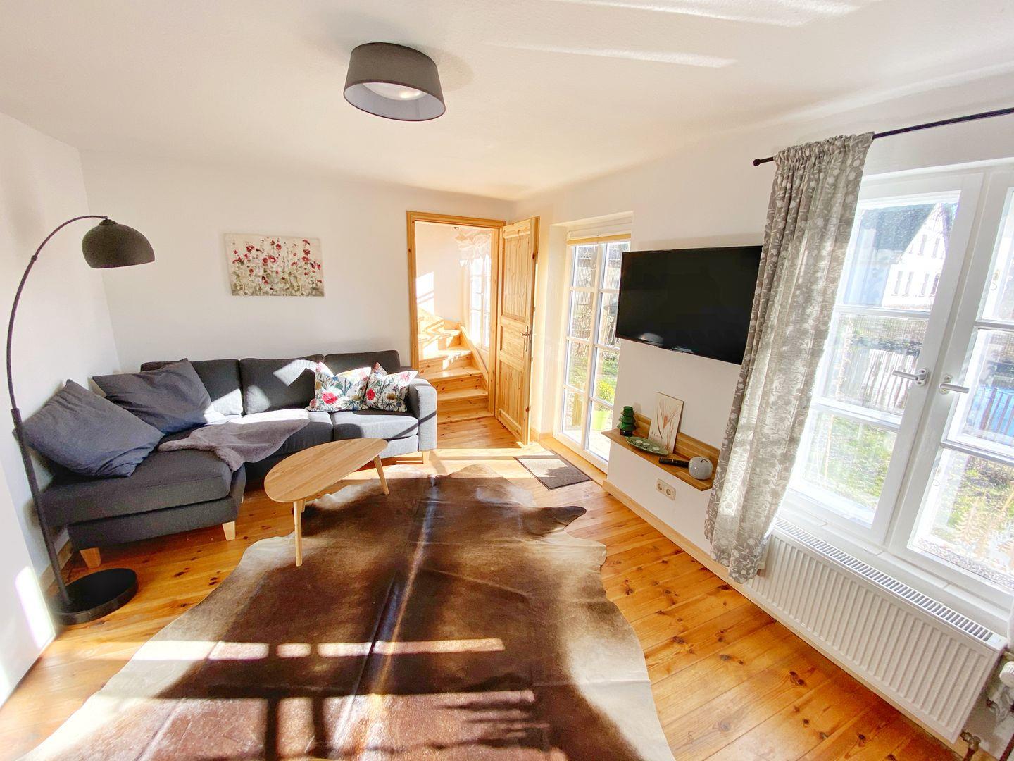 Das Ferienhaus "Alte Mühle" auf dem Hofgut Bisdamitz bietet eine Sauna, Kamin und einen idyllischen Garten nahe dem Nationalpark Jasmund.