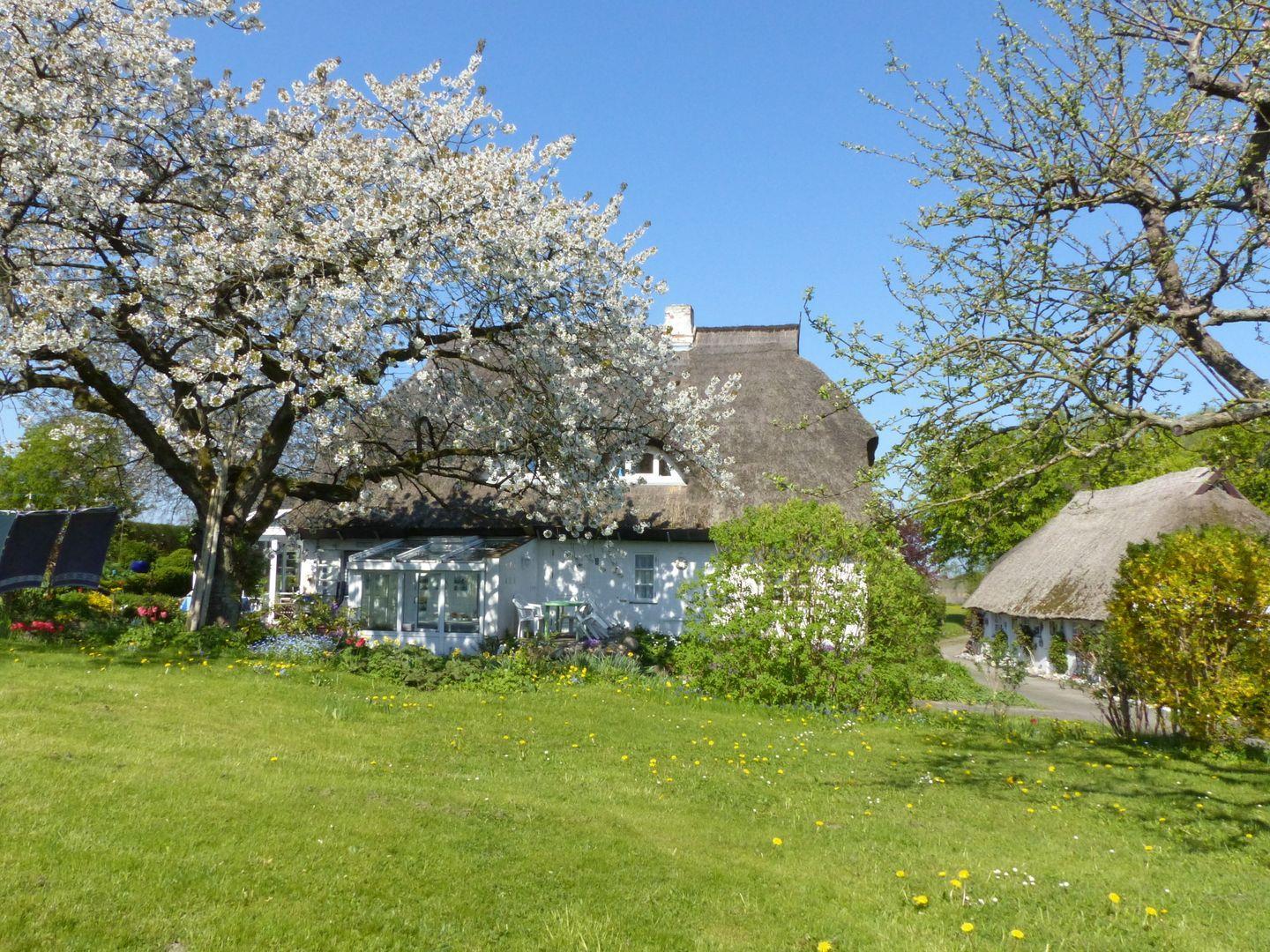 Das Anwesen mit 2 reetgedeckten Häusern stammt aus der Mitte des 19.Jh. und liegt in einem 3000 qm großen Garten, durch den ein kleiner Bachlauf fließt. Uralte Obstbäume und unzählige Blühpflanzen erfreuen den Naturliebhaber vom Frühling bis in den Herbst. Die beiden Wohnungen im Backsteinhaus sind individuell im Landhausstil ausgestattet. Es gibt separate Eingänge und Terrassen, Sat-TV und Telefon und einen Parkplatz. Die kleine Reethaushälfte befindet sich auf dem gleichen Grundstück wie das Backsteinhaus, verfügt über eine eigene Terrasse sowie einen Gartenanteil.