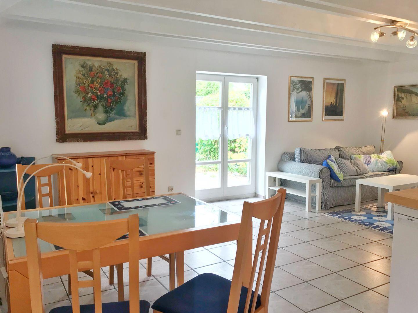 Charmante reetgedeckte Doppelhaushälfte in Lohme mit Garten und Terrasse, ideal für Naturliebhaber und Ruhe suchende Gäste.