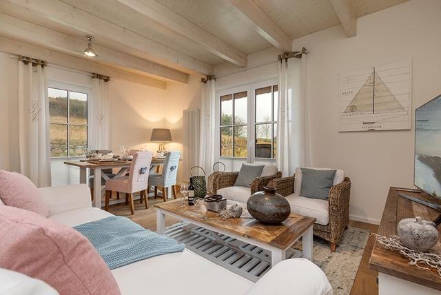 Das neue 5-Sterne-Designhaus Freyh II mit Reetdach und Komplettausstattung im Stil von Riviera Maison für gehobene Ansprüche überzeugt durch eine umfassende Ausstattung und Komfort.