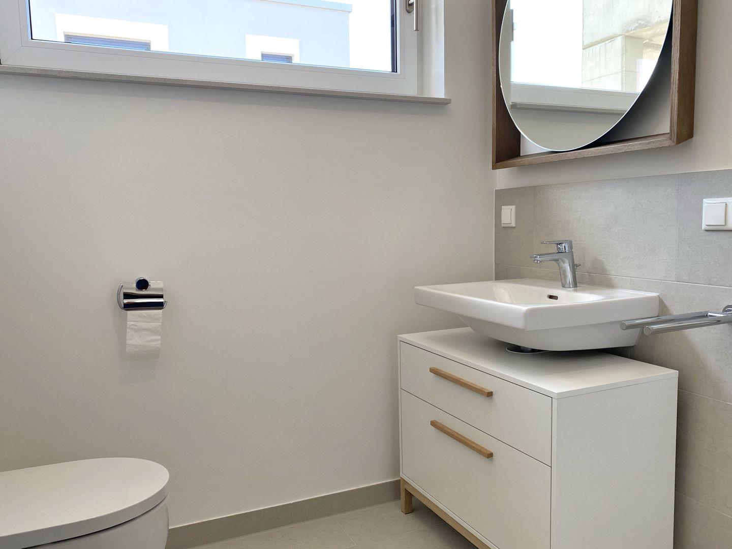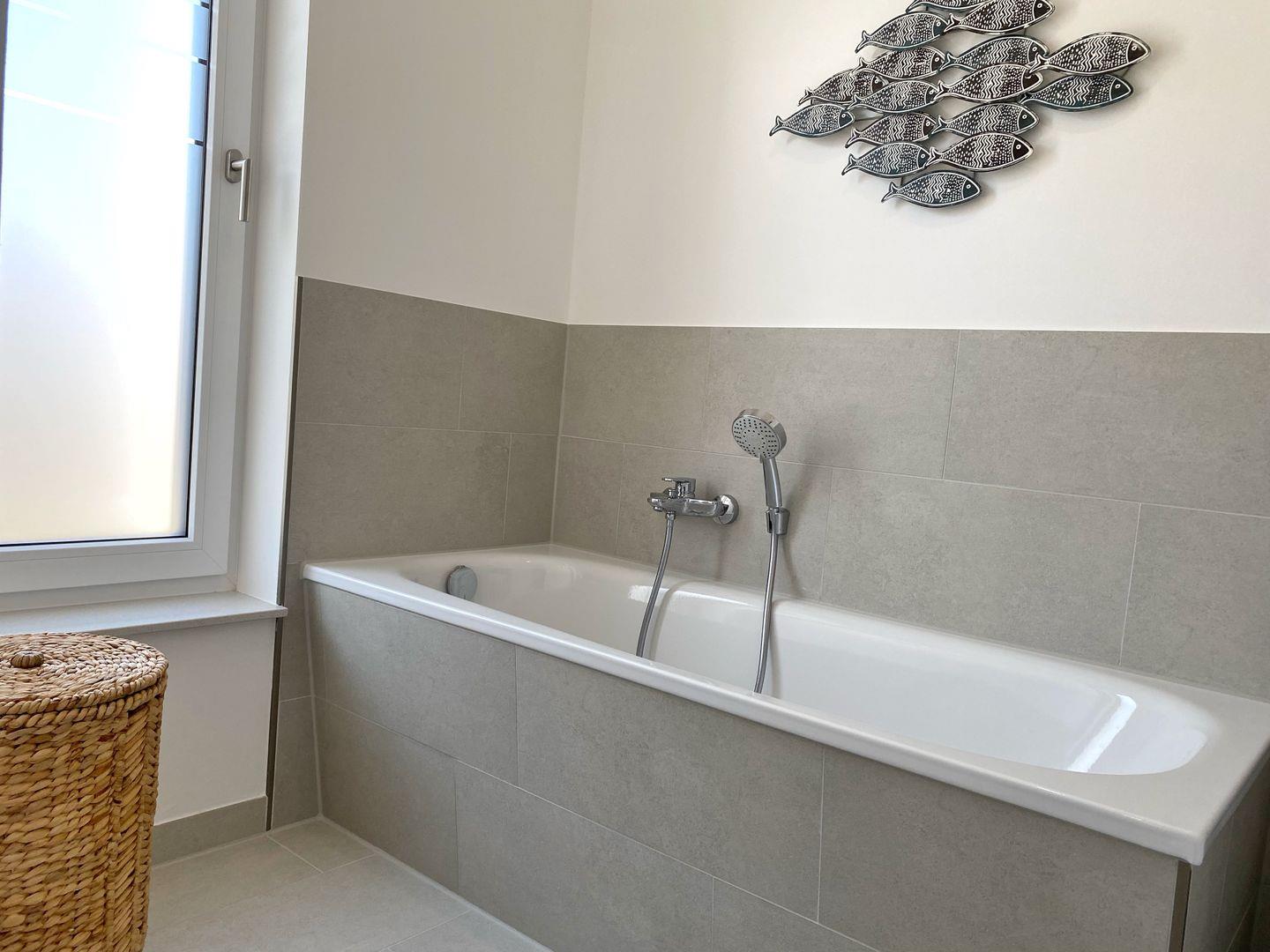 Zur Wohnung gehört ein geräumiges Tageslichtbad mit einer großen und geräumigen, ebenerdigen Dusche und einer Badewanne, die zum Relaxen einlädt.