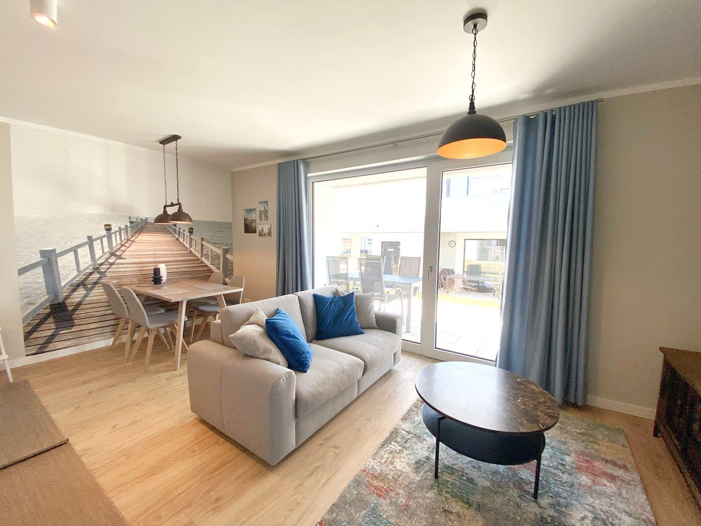 Modernes Erdgeschoss-Appartement mit großer Terrasse und Blick auf den Golfplatz nahe Nationalpark Jasmund.