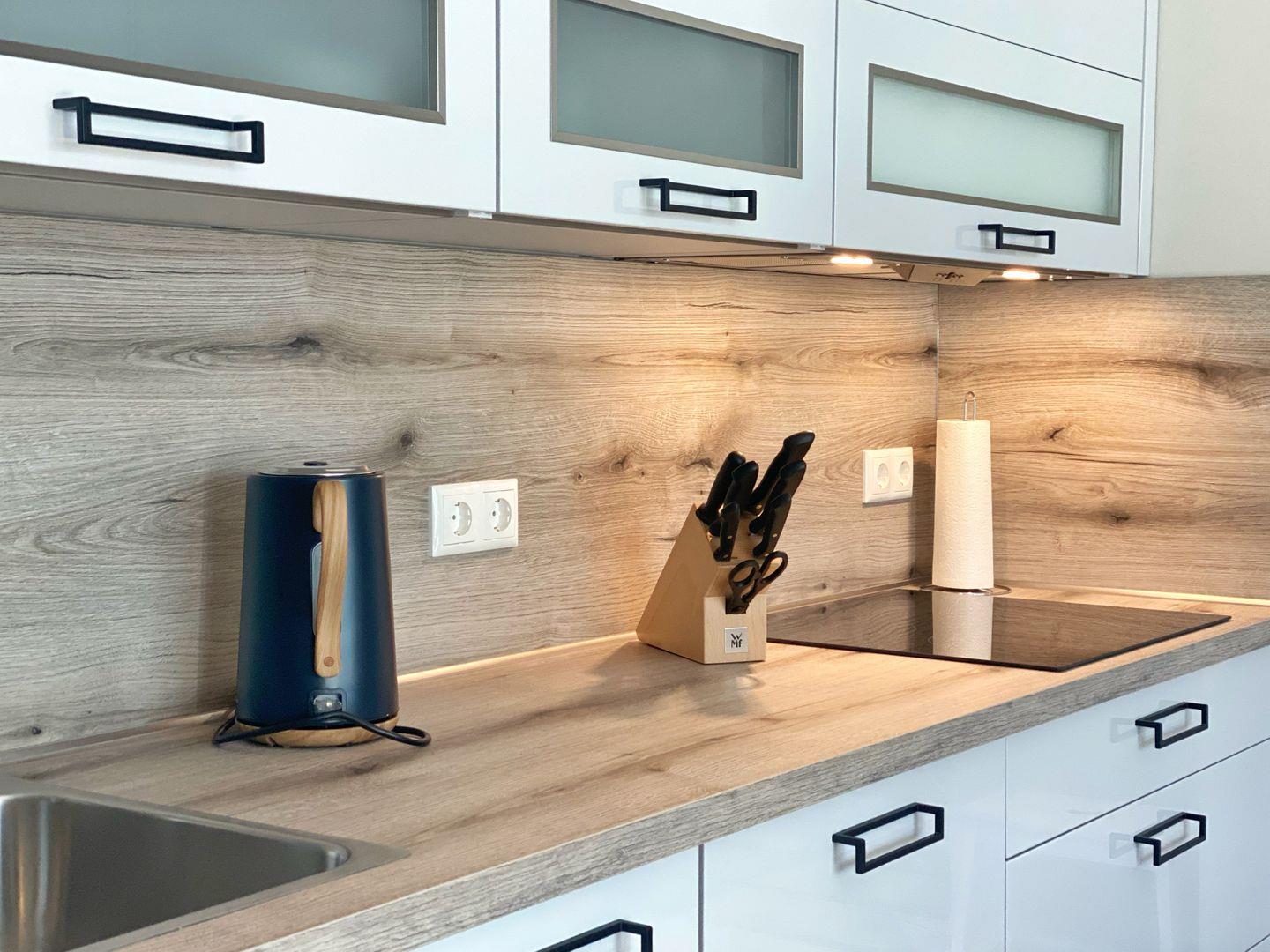 Freuen Sie sich in der Wohnung Meerzeit auf Großzügigkeit, hochwertige Einbauten, geschmackvolles Interior & eine wunderschöne, große sonnige Terrasse.