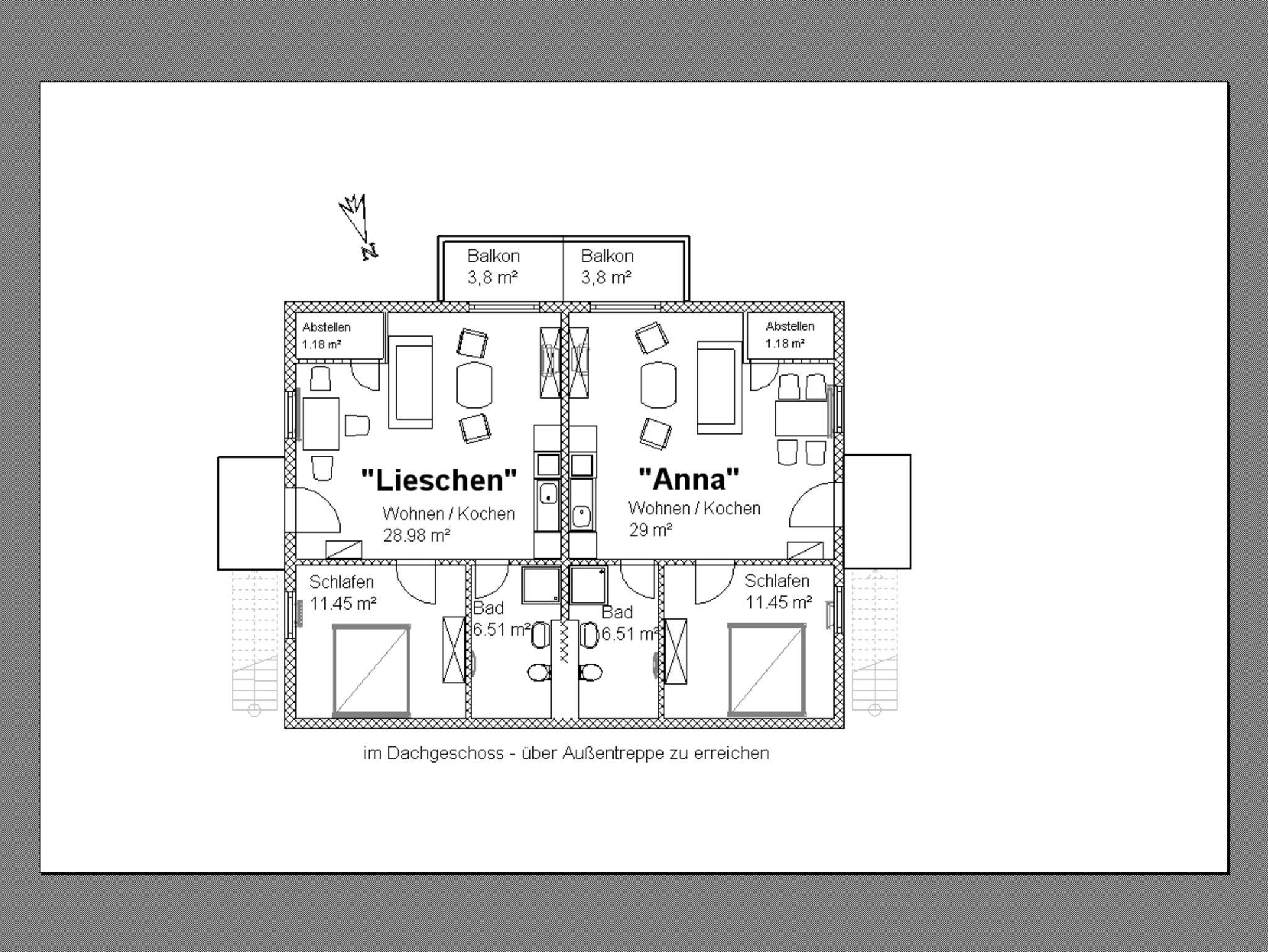 Im Haus befinden sich 4 Ferienwohnungen mit jeweils separaten Eingängen.