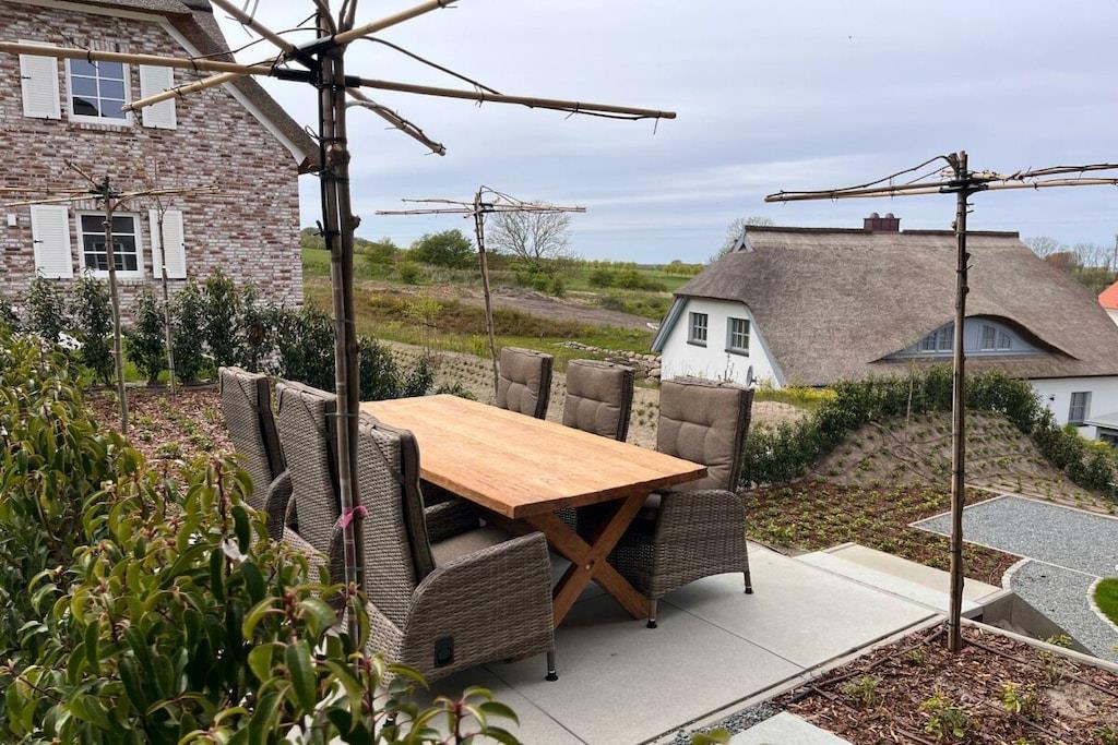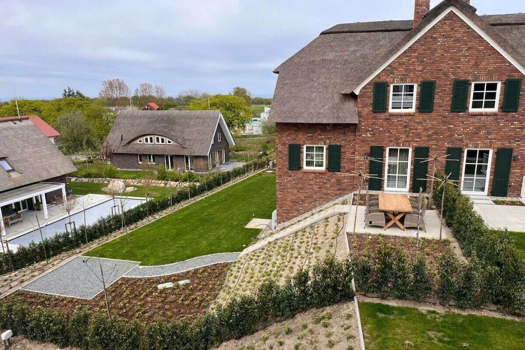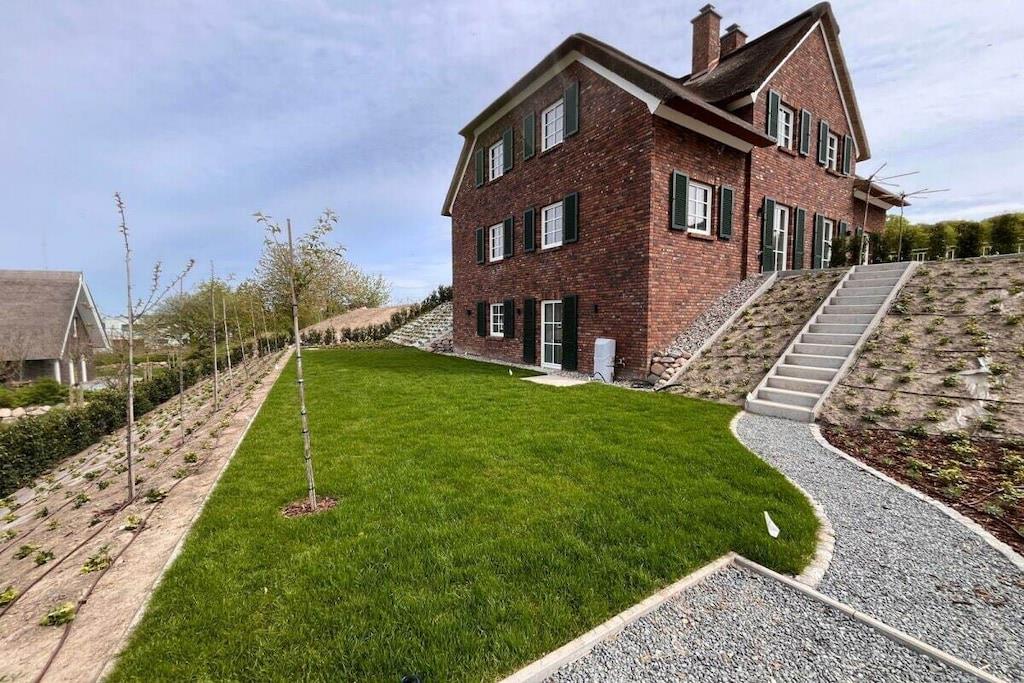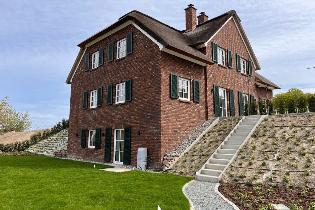 Dieses stilvolle, geräumige Reetdachdoppelhaus erstreckt sich über eine Wohnfläche von 137 m² auf drei Etagen und bietet Platz für bis zu sechs Gäste. Die Ausstattung im Landhausstil schafft eine warme, einladende Atmosphäre, während exklusive Annehmlichkeiten für Komfort und Entspannung sorgen. Im Souterrain finden Sie den Wellnessbereich, zu dem eine Saunasuite, eine Regenwald- sowie eine Außendusche gehören. Ferner befinden sich dort noch ein Schlafzimmer sowie der HWR. Im EG erwartet Sie ein großzügiger Wohn- und Essbereich, sowie die offene Küche mit Zugang zu zwei Terrassen. Das Obergeschoss mit 2 Schlafzimmern und dem Masterbad rundet diese Wohlfühlatmosphäre ab.