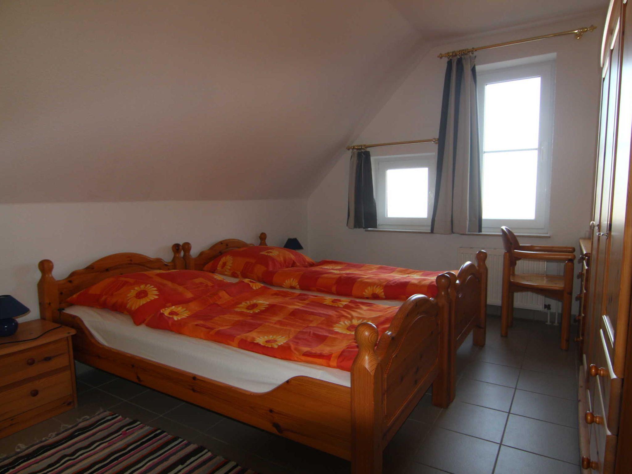 Die 65 Quadratmeter grosse Ferienwohnung ist ausgestattet mit 3 Schlafzimmern (insgesamt 6 Betten), einer offenen Küche und einem Bad mit Badewanne.