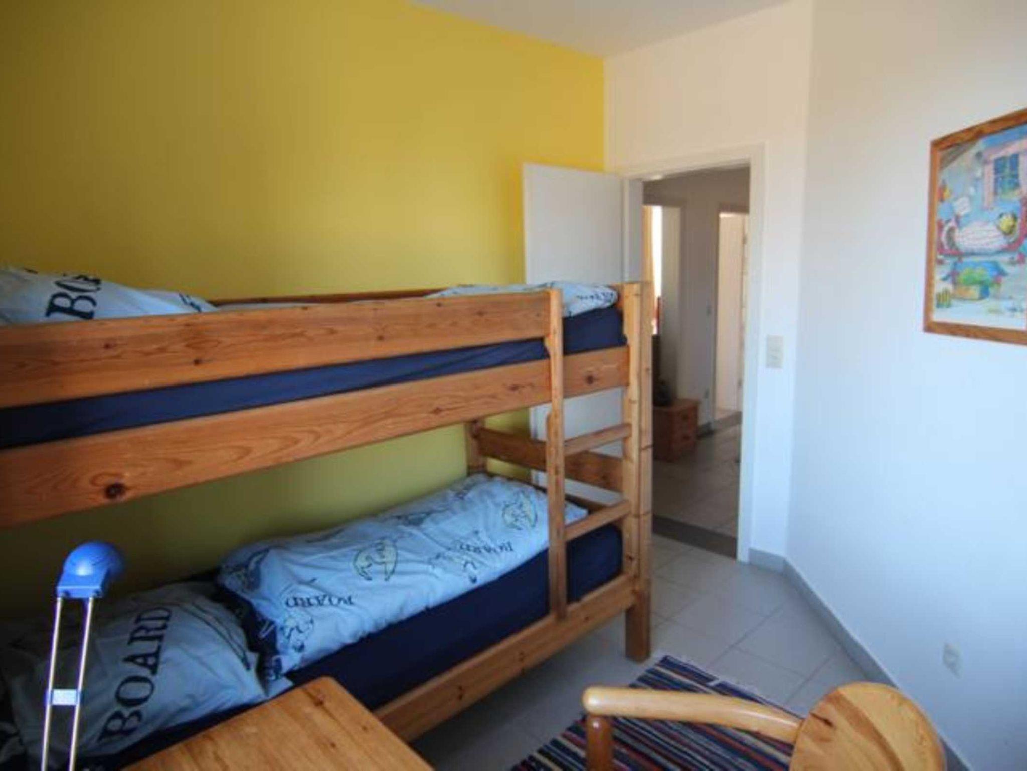 Die 52 Quadratmeter grosse Ferienwohnung ist ausgestattet mit 2 Schlafzimmern (insgesamt 4 Betten), einer offenen Küche und einem Bad mit Badewanne.