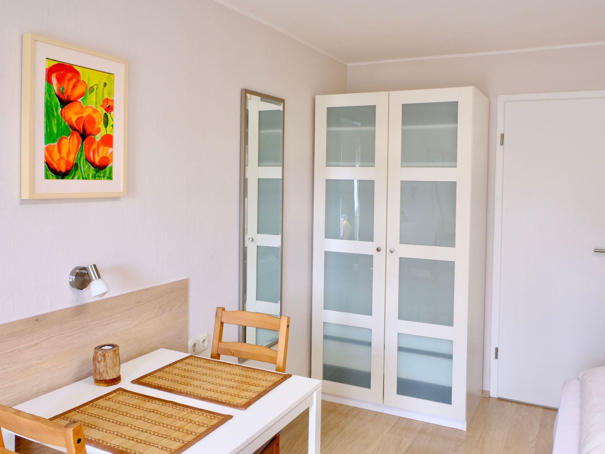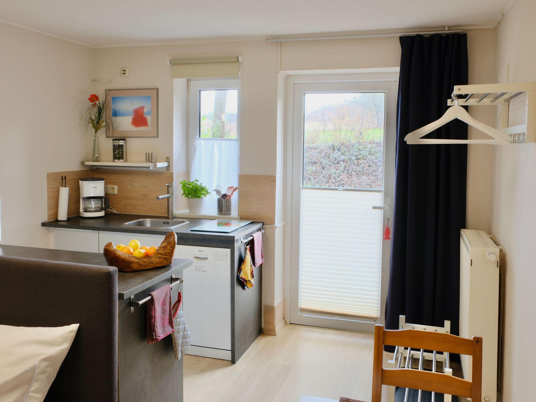 Das Studio Klatschmohn ist eine 20 qm große 1-Raum-Wohnung für 1 - 2 Personen und besteht aus einem kombinierten Wohn-/Schlafraum mit integrierter Küchenzeile, Bad, Terrasse (8 qm).