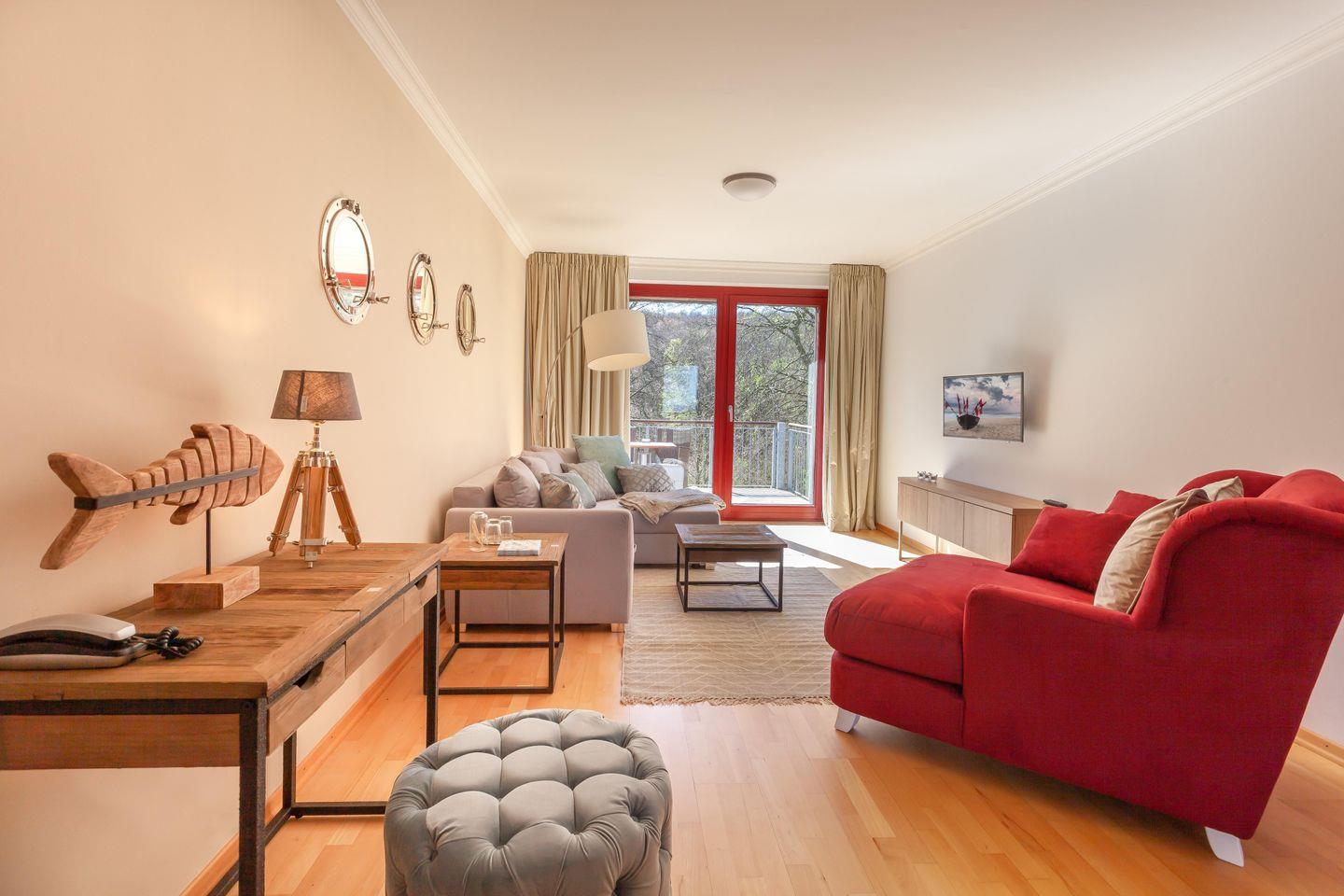 Moderne 2-Raum-Ferienwohnung mit Meerblick, zwei Balkonen und direktem Zugang zum Golfplatz in Lohme.